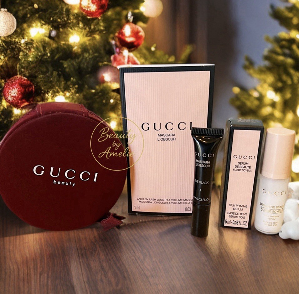 GUCCI Beauty Limited Edition 3 Pc Travel Gift Set. Mascara Gucci mini zipper pouch Silk Priming Serum