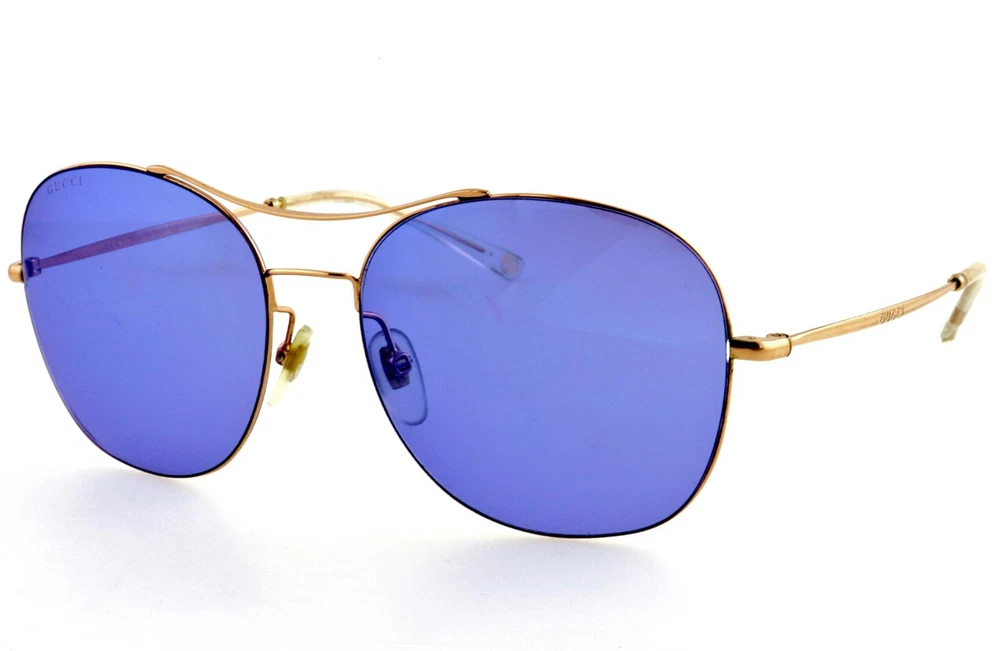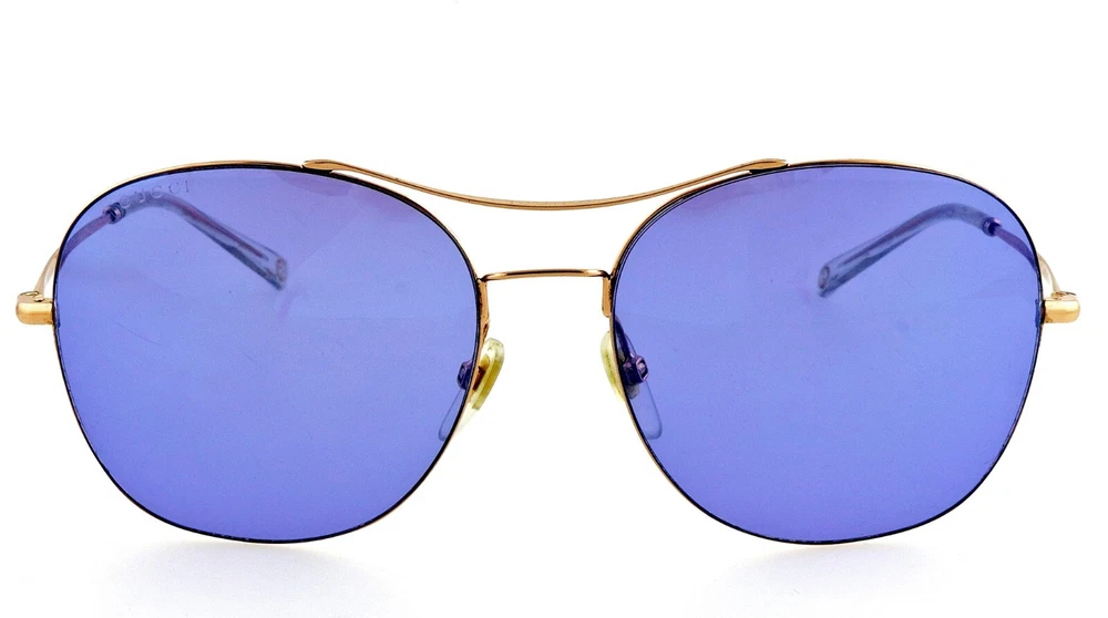 HomeGUCCI GG0501S 58mm Rose Gold Aviator Blue Sunglasses Italy Lens Scratch