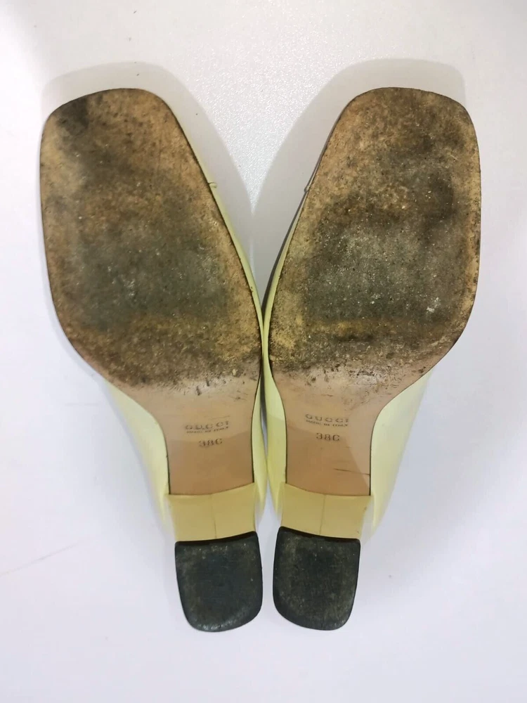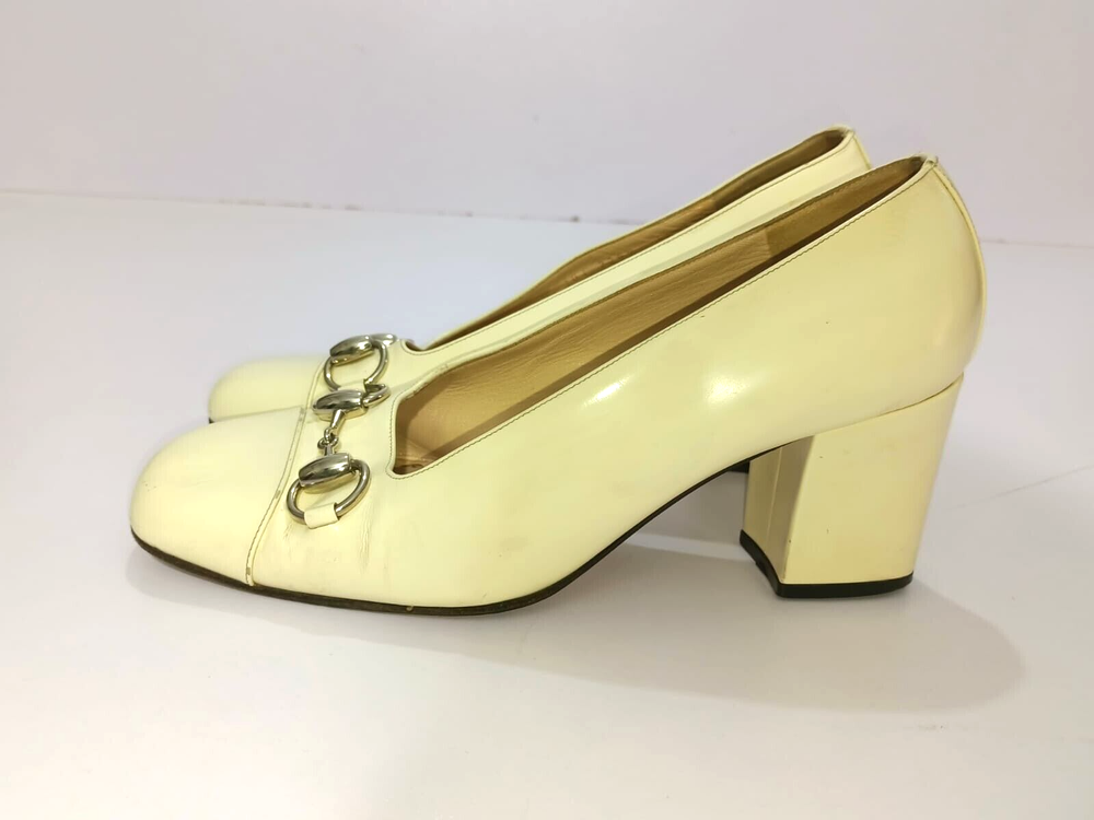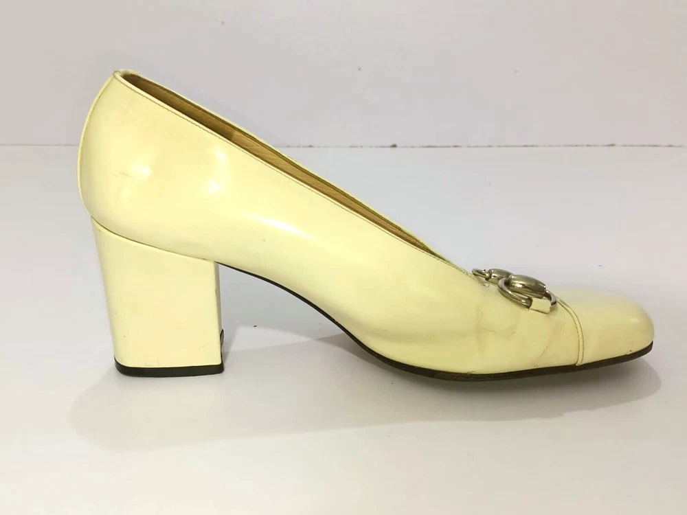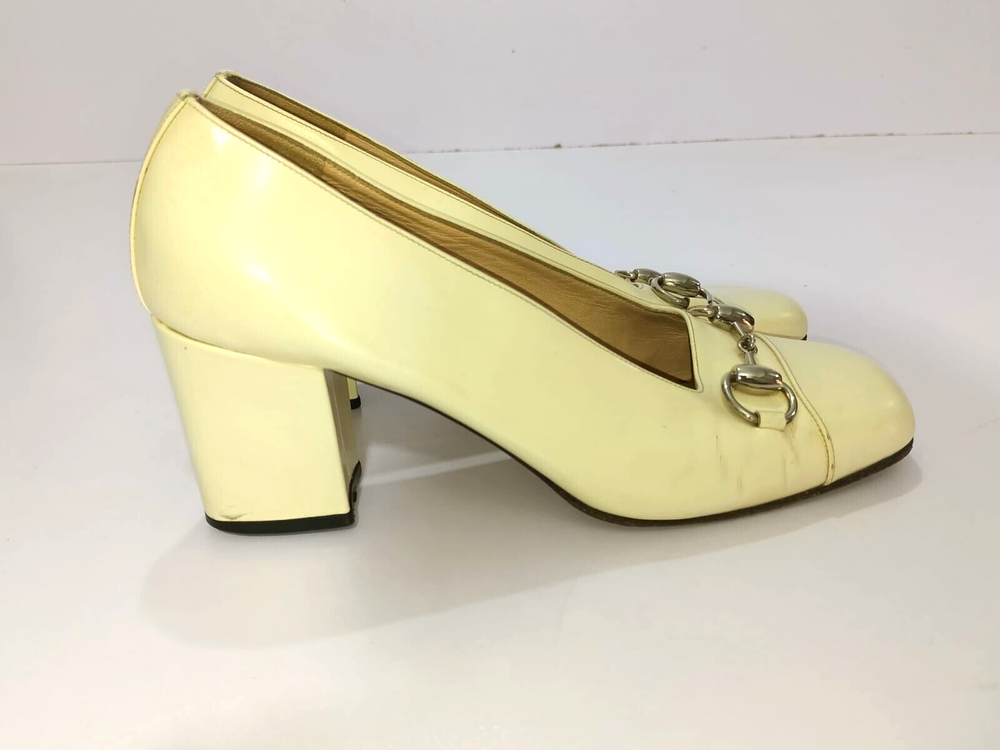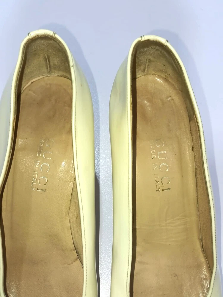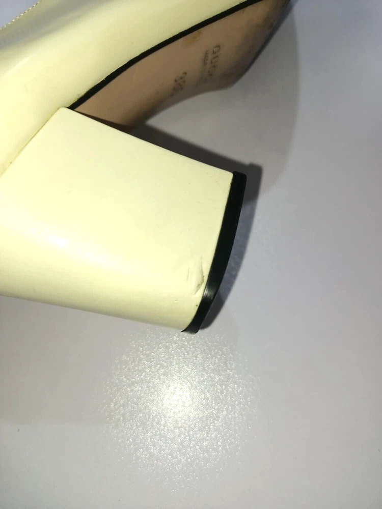 GUCCI PATENT LEATHER BLOCK HEELS PUMPS SIZE, EU38,US8, IS IN USED CONDITION, > INNER SIGN OF USE, > DOWN SIDE THE SOLE USED MARKS, > BOTH TOES HAVE LITTLE SCRATCHES SHOWING IN PICTURE NUMBER 20, > ONE HEEL LEATHER HAS MINOR TAKEN OUT SHOWING IN PICTURE NUMBER 11, > DUE TO USE BESIDE THE SHOES PATENT LEATHER LITTILE LINING IS SHOWING CAN SEE IN PICTURE NUMBER 12, 13, 14, 15 & 20, >ON ONE BACK SIDE THE HEELS MINOR PATENT LEATHER COLOUR HAS COME OFF SHOWING IN PICTURE NUMBER 22, > REQUESTED TO SEE ALL PICTURES VERY CAREFULLY BEFORE THE BUYING CONDITION IS CLEARY SHOWING IN ALL PICTURES, > IF HAVE ANY QUESTIONS TO ASK THEN FREELY MESSAGE ME IN INBOX FOR ANY ASSITANCE, > NO RETURN IS ACCEPTABLE, > NO DUST BAG AND BOX WITH THIS ITEM, > SHIPPED WITH DHL INTERNATIONAL EXPRESS FASTER SERVICE, NOTE : The Buyer is responsible for paying All import taxes and duties on international shipments.