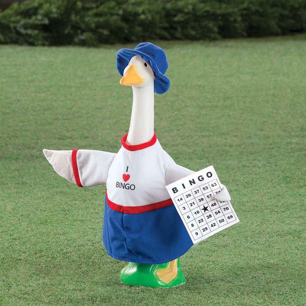 An official Gaggleville Goose outfit!Transform your lucky goose into a card-carrying, dauber-dabbing' winner, dressed in this fun Bingo outfit! Featuring an "I heart Bingo" shirt, blue skirt and matching hat with elastic strap, your goose will be the best-dressed player in the Bingo hall (or your apartment hall, front porch, game room or patio!). Our adorable goose outfit even includes two wings ... and one is carrying a classic Bingo card for added fun. It's exclusively designed to fit our large goose (sold separately); for indoor/protected outdoor use. Polyester/cotton; spot clean. Imported. By Gaggleville. Powered by Frooition Buy one, get one at 15% off! On All Products Storewide SALE Holidays Home Kitchen Office Health Beauty Apparel Jewelry & Accessories Outdoor Entertainment Candy Shoppe Intimacy Automotive Accessories BINGO Large Goose Outfit by Gaggleville Gaggleville Bingo Goose Outfit, Fits Large 23" H Statue Item Description An official GagglevilleTM Goose outfit! Transform your lucky goose into a card-carrying, dauber-dabbing' winner, dressed in this fun Bingo outfit! Featuring an "I heart Bingo" shirt, blue skirt and matching hat with elastic strap, your goose will be the best-dressed player in the Bingo hall (or your apartment hall, front porch, game room or patio!). Our adorable goose outfit even includes two wings ... and one is carrying a classic Bingo card for added fun. It's exclusively designed to fit our large goose (sold separately); for indoor/protected outdoor use. Polyester/cotton; spot clean. Imported. By GagglevilleTM. About Us About Us Payment Shipping Customer Service About Us Welcome to Fox Valley Traders on ebay, where we specialize in providing an evolving selection of one-of-a-kind products at affordable prices. With roots dating back to 1935, our knowledgeable team is dedicated to bringing you high-quality, functional, and unique household products and gifts that won't break the bank. Our mission is to continuously innovate and improve items based on customer needs and industry trends. We are the proud owners and developers of multiple brands, including Miles Kimball, Walter Drake, Easy Comforts, Holiday Peak, OakRidge, LivingSure, Exposures, NativeRemedies and PetAlive. Learn more about these brands and their product offerings below. We invite you to spend some time in our ebay storefront. Shop around, explore our brands, and read what other satisfied customers are saying. Let us know how we can help - we would be honored to earn your business! Miles Kimball specializes in a wide variety of festive holiday decorations, handy kitchen gadgets, storage and organization solutions, gardening supplies, home décor, table covers, pets supplies, and gifts for everyone! We strive to delight our customers with hard-to-find gadgets and personalized gifts that are unique, unusual, and unexpected. Walter Drake has an extensive line of products that are functional problem-solvers for your home. Find great values in kitchen gadgets, cookware and bakeware, lawn and garden, bedding, calendars, and office supplies. Easy Comforts strives to make difficult times more comfortable, while helping you (or someone you care about) find solutions to life's physical challenges. Discover value-priced health and personal care items including home security, bathroom safety, daily living aids, diabetic socks, dressing aids, incontinence solutions, and pain remedies. Holiday Peak is your one-stop holiday shop! Find seasonal décor to bring a warm and inviting holiday atmosphere to your home all year. We offer pre-lit, fully decorated Christmas trees, unique Christmas tree ornaments and heartwarming Christmas cards for the winter season. Keep your festive spirit alive all year with our seasonal indoor and outdoor decor for Valentine's Day, St. Patrick's Day, Easter, patriotic and fall seasons . OakRidge offers top quality home items at an affordable price. Bring the warmth and comfort of home to any space with our exclusive bed linens, bath essentials, small furniture, floral décor, and other home furnishings. LivingSure is on a mission to develop products that will help keep you safe, secure, and independent both inside your home and out. Find smart solutions for personal safety, home security, emergency radios, auto blankets, flashlights, ladders, step-stools, and more. Exposures knows the value of special moments and experiences and wants to help you preserve them forever. Celebrate life's memories with our exclusive photo albums, frames, gifts, and home décor. NativeRemedies and PetAlive offer homeopathic health and wellness products for your whole family, including your pets! Enjoy our quality herbal and natural remedies for treating common ailments. Payment Payment We accept PayPal payments only. Sales Tax: For shipments to Wisconsin addresses, we are required by State law to collect Sales Tax. Shipping Shipping In order to keep things simple for you, Fox Valley Traders offers $1.99 shipping on Ebay for all Continental US Street and PO Box addresses. We use standard shipping for all orders in the continental US. Please allow 7-9 days for delivery Customer Service Customer Service If you have any questions about the item, please click the "Ask a question" link below. All returns must be made within 45 days from the date of shipment. We carefully inspect orders prior to shipment; upon receipt, please inspect your purchase and notify us of any damage. We will arrange for a prompt replacement. Shipping charges will not be reimbursed. Please contact us through our Ebay account for information on how to return an item. *All returns will be accepted unless otherwise noted in item description.* More Items! View more great items Gaggleville Reindeer Baby Goose Outfit, Fits Baby 17" H Statue, by Fox Valley Tr $28.43 Gaggleville Conversation Heart Goose Outfit, Fits Large 23" H Statue, by Fox Val $33.56 Gaggleville Bumble Bee Goose Outfit, Fits Large 23" H Statue, by Fox Valley Trad $29.9