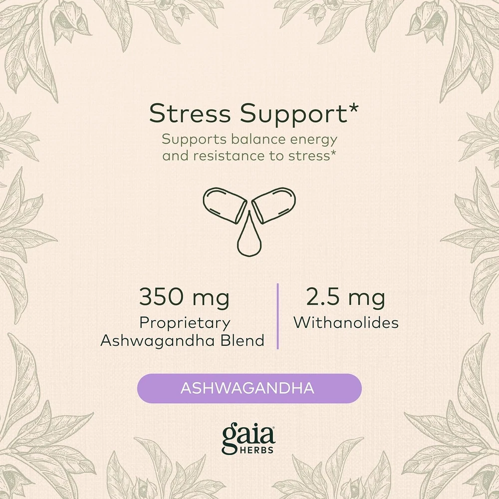 Gaia Herbs, Ashwagandha Root Vegan Liquid Phyto Capsules - Stress Relief, Immune Support Supplement, Balanced Energy Levels and Mood , 120 Ct (Pack of 1)