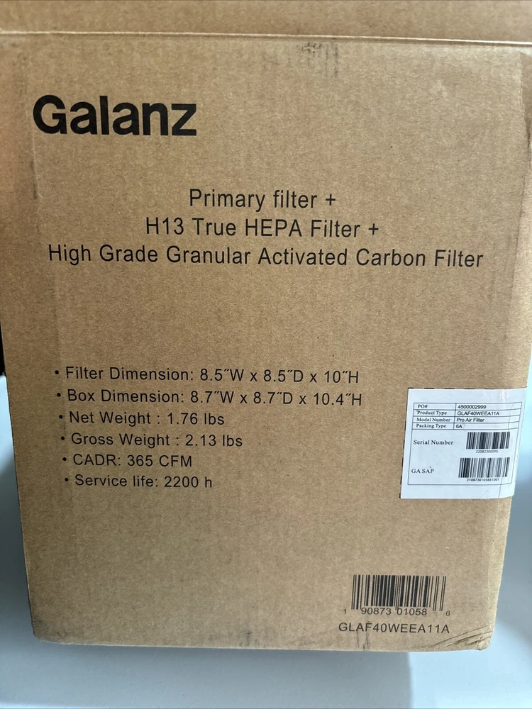 Galanz Pro Air Purifier Replacement Filter, H13 HEPA with High Grade Granular Activated Carbon Filter, 3-Stage Filtration for Dust, Pet Odors, Pollen, Smoke, Pollution, White