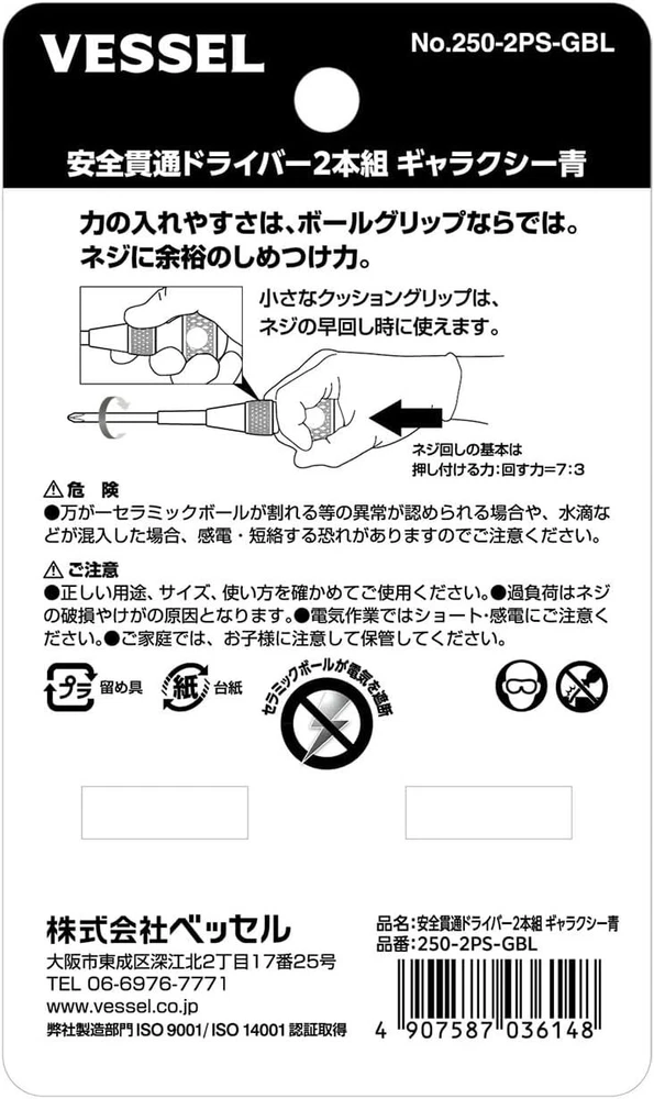 Description [ Uses] For chipping in electrical work, and removing screws from switchboards and terminal blocks. [Features] Head style: plus/minus Materials: Ceramic ball: ceramic, nut: soft steel wire, shaft: Si-Cr-V steel, handle: CA+TPE ●Limited color Galaxy (Blue) ●Built-in ceramic ball that does not conduct electricity. ●Uses zirconia ceramic, which is the strongest, most rigid, and most abrasion-resistant of all ceramics. ●Large nut that can be hit with a hammer. ●The cutting edge is black point processed with high precision. Shipping We will ship by Speed PAK Economy International Buyers - Please Note: Import duties, taxes, and charges are not included in the item price or shipping cost. These charges are the buyer's responsibility. Please check with your country's customs office to determine what these additional costs will be prior to bidding or buying. Thank you for your understanding.