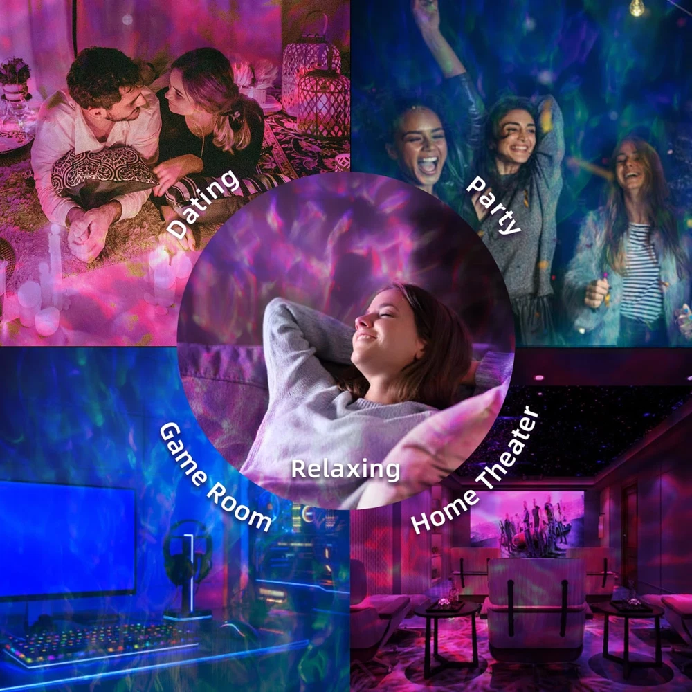 The night light projector makes you feel like you're in the stars, the Milky Way, and under the sea. As a gift for the kids, open it and the kids will first be blown away by this wonderful display and then be sure to applaud and cheer! night light for kids You can also use it to decorate weddings, family parties, and other events that require atmosphere and enjoy the beauty of the starry sky. kids night lights for bedroom Adjustable brightness and flow rate allow you to adjust your mood anytime! You can choose the light flow speed you like at will and enjoy the flowing starry sky with your baby at bedtime. night light projector for kids Projector has 5 levels of brightness to meet your different brightness needs. It's ideal for nighttime feedings or diaper changes. star projector night light for kids Night lights for kids with 13 lighting modes The baby night light projector consists of 4 LED beads (red, green, blue, and white) and supports solid, bi-color, and tri-color overlays to create a wonderful light show, providing a soft light while your child enters a world of fantasy. star night light projector The kids night lights for bedroom brings you and your child closer to the stars and the moon, all projected clearly on the bedroom ceiling. Your child will say: Oh, it's beautiful! projector night light for kids Slow-moving stars will create a fun atmosphere for your family story night! Help them sleep soundly and keep your baby happy. toddler night lights Let your child focus on the beautiful starry sky on the walls and ceiling! Helps new mothers with frazzled hands and no more worries about uncooperative children. kids night light projector Easy to operate with one hand, all operations can be done with 4 buttons, so you don't have to worry about leaving your hands free. Bedroom Atmosphere Conditioning:Galaxy Projector for Bedroom has 4 LED bulbs that can project 12 different colors to create different ambient scenes in your bedroom. The dynamic water projection effect combined with the realistic moon pattern allows you to enjoy the romantic atmosphere of the Galaxy Moon without leaving your home 5 levels of brightness adjustment & 3 levels of speed adjustment: The Galaxy Light Projector's brightness adjustment feature adapts to any scenario, lighting up a party with 5 levels of brightness, and can also be used as a Kids Night Light Projector baby night light to soothe babies to sleep on the lowest setting. In addition, the nightlight features dynamic speed adjustment: fast, slow, and static, which can be switched at the touch of a button Applicable Scenarios: Adjust the color, brightness and projection speed of the projector light to meet the atmosphere of various scenes, whether you want to add a romantic atmosphere to your date, or add a dynamic and lively atmosphere to your party, or as a sleep aid night light, our starry galaxy night light can meet your needs USB connection for power & 4 hours auto shut-off: The Light Projector is powered by a USB connection, eliminating the need for additional battery power, and features an automatic shutdown after 4 hours of continuous operation, making it even more hassle-free and energy-efficient when accompanying you or your child to sleep Gift attributes: Simple and easy to use, as well as suitable for a variety of occasions, the Galaxy Light Projector can easily be paired with any style of room, making it perfect for gift giving. Perfect for movie night, dinner dates, or even a child's bedtime or use as an autism sensory light. We provide follow-up product services, so you can buy with confidence and the gift recipient can use it with peace of mind