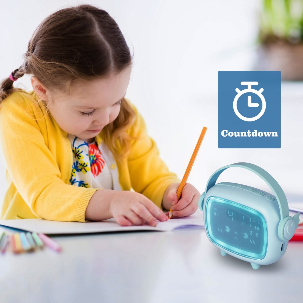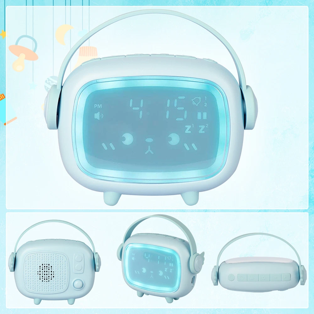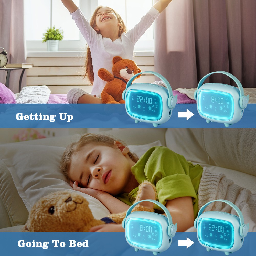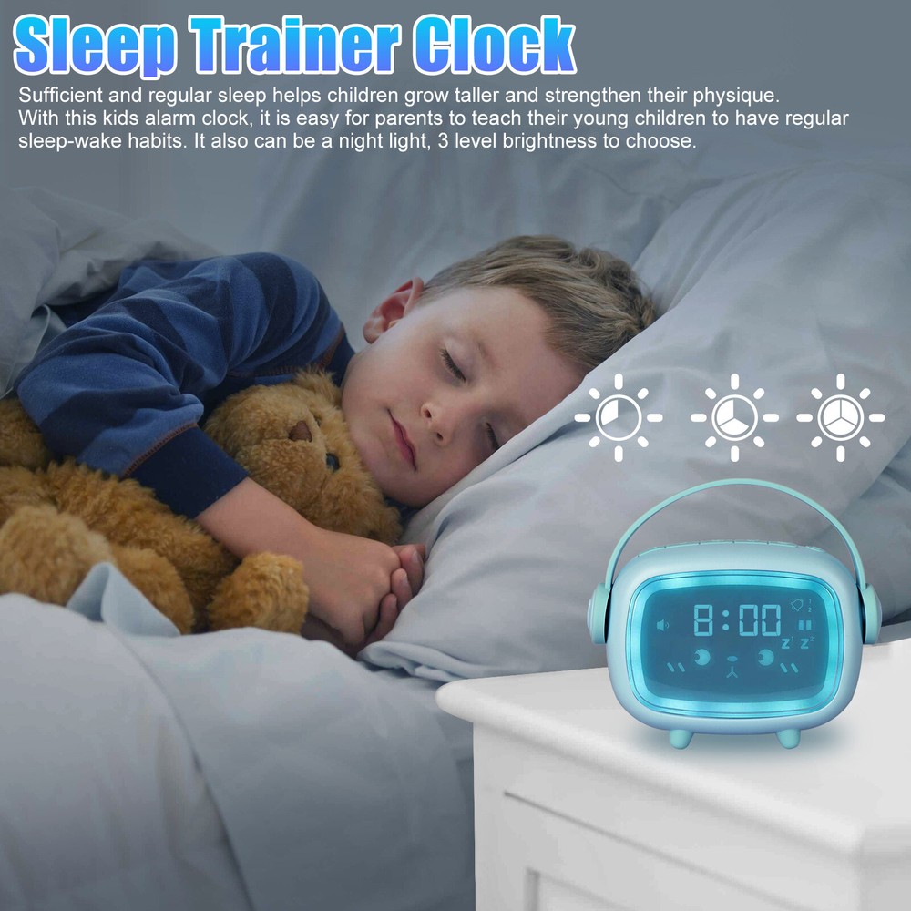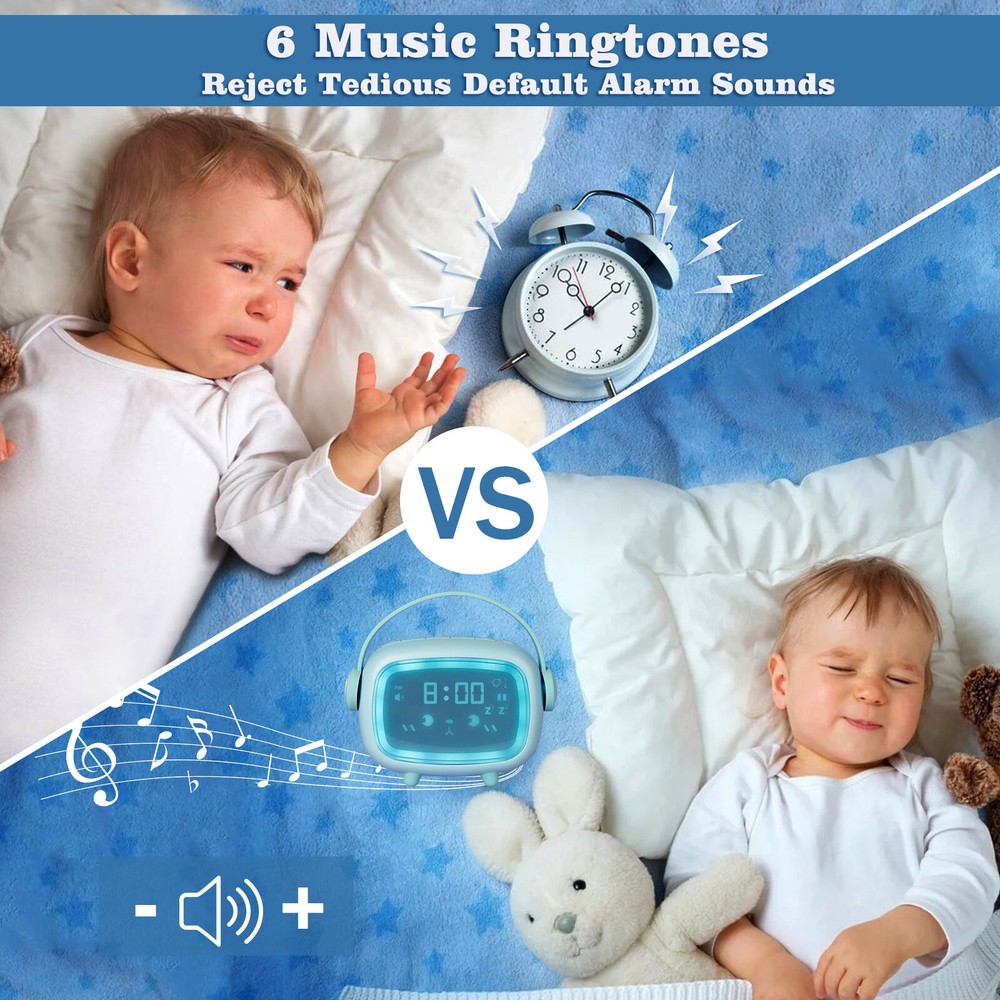 Product Feature ⏰ Sleep Trainer Clock: Sufficient and regular sleep helps children grow taller and strengthen their physique. With this kids alarm clock, it is easy for parents to teach their young children to have regular sleep-wake habits . It also can be a night light , 3 level brightness to choose. ⏰ Sunrise & Sunset Light: Set your sunrise time , the light will gradually get brighter from 10% to 100%. While the sunset simulation is the opposite, the sunset light will gently dim from current brightness to completely black out. ⏰ Multifunction Display: The alarm clock can display time, alarm, month, date, year . Temperature display reminds you of temperature changes, add or remove clothes in time to prevent colds. The countdown function can help to plan the children's homework time, game time, and your cooking time. ⏰ Dual Alarm & Snooze : Dual alarm that can be set simultaneously, 3 wake-up date modes: Monday-Friday, Monday-Saturday, and Monday-Sunday to help you arrange your life more efficiently. Press the Snooze button, kids can get an extra 5 mins nap. ⏰ Voice Sensor & Soothing Light : If only use the battery powered , the kids alarm clock will enter sound sensor mode. It will be wake up for 20s when the surrounding is louder than 56 dB. We can wake up it by clapping, tapping, and speaking. The Night Light protect children's eyes and offer a comfortable glow for children of all ages. This cute alarm clock Ponyo is soft to touch, safe for kids, especially suitable to be a Christmas, New Year, Birthday gift to your boy or girl. Product Specification Color Blue Material ABS and PC silincone Signal Format Digital Time Screen 12 Hour/24 Hour mode Snooze Alarm Clock Yes Ringtone types 6 Power supply Built-in 1200mah lithium battery Dimensions 5.0*3.5*1.7 inch Package Included 👒 Alarm Clock x 1 👒 User Manual x 1 👒 USB cable x 1 Location Descriptions To improve your buying experience and ensure fast delivery, Your order will be shipped from the warehouse located in either new jersey or california that is closest to your address. If you have any questions, Please contact us. Thank you for your support ! Support & Share
