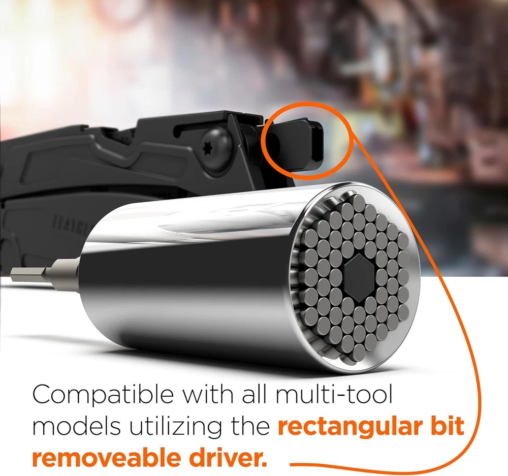 Galvanox Universal Socket Adapter Compatible with pocket size, Silver Product Details Color: Silver Material: Stainless Steel Brand: GALVANOX Item dimensions L x W x H: 3.96 x 1.02 x 1.02 inches Included Components: Socket Adapter Number of Pieces: 1 Manufacturer: Galvanox Part Number: LBUT202 Item Weight: 7.8 ounces Product Dimensions: 3.96 x 1.02 x 1.02 inches Item model number: LBUT202 Size: pocket size Style: Screw Item Package Quantity: 1 Batteries Included?: No Batteries Required?: No Color: Silver Material: Stainless Steel Brand: GALVANOX Item dimensions L x W x H: 3.96 x 1.02 x 1.02 inches Included Components: Socket Adapter A must have accessory add-on for Leatherman users! The Galvanox Universal Socket adapter compatible with all "Flat-Bit" multi-tools to help you get the job done right. Less to Carry: This tool allows you to travel with one adapter instead of multiple socket attachments, making it a space-saving and versatile addition to your tool kit. Automatically adjusts: The adapter instantly adjusts to fit hex or square nuts, hooks, crew eyes, tension screws, bolt heads, and even stripped or damaged nuts ranging from 1/4" to 3/4" in size. Durable and long-lasting: Made of high-quality stainless steel, this tool is built to withstand heavy use and will serve you for years to come. Whether you're a mechanic, plumber, carpenter, or simply enjoy projects, our universal socket adapter is the perfect gift and a handy tool for everyone. Galvanox Universal Socket Adapter Compatible with LeathermanThis compact and efficient tool automatically adjusts to fit a variety of shapes and sizes, ranging from 1/4" to 3/4". Say goodbye to the hassle of searching for the right attachment - our universal socket adapter saves you time and space, making it an essential addition to your tool universal socket adapter uses individual steel rods to allow the socket to instantly conform to any shape. It's precision engineered for a perfect fit, ensuring that your tool remains firmly in place while you work. Made of high-quality stainless steel, this tool is built to withstand heavy use and will serve you for years to come. Whether you're a mechanic, plumber, carpenter, or DIY enthusiast, our universal socket adapter is the perfect gadget to simplify your life and help you get the job done.Product Specifications:Made of high quality stainless steelDimensions:100.48mm x 25.89mm x 25.89mmWeight: 172 gramsAdjusts to fit nuts and bolts ranging from 1/4" to 3/4" (7-19mm)Compatible with Leatherman Surge, Wave Plus, Signal Camping, Skeletool, and Charge Plus