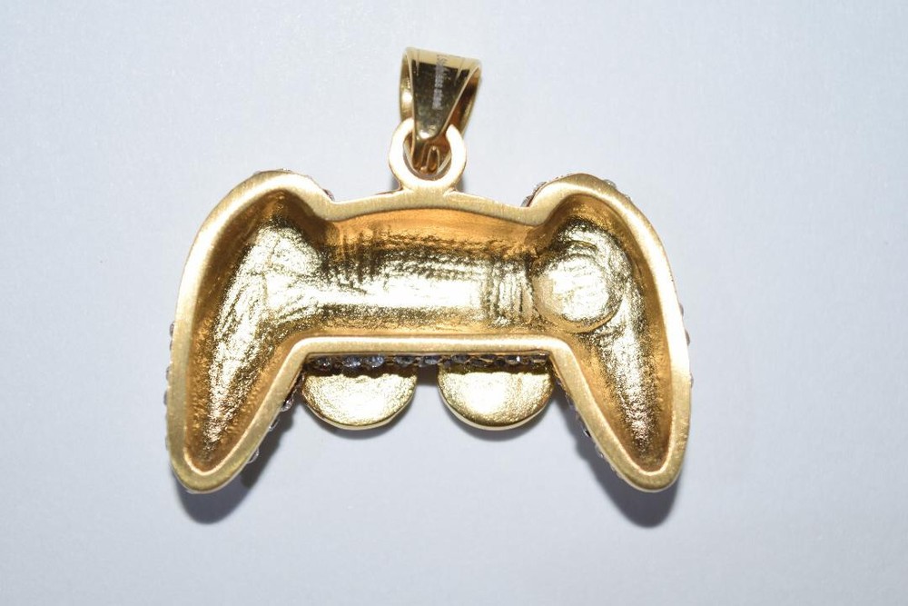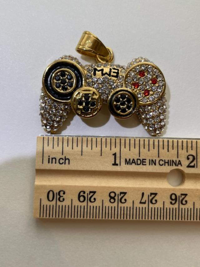 Game Controller Pendant for your Necklace. Brand New. Gold Plated and Stainless Steel Jewelry - 3" Wide x 1.25" High Men's