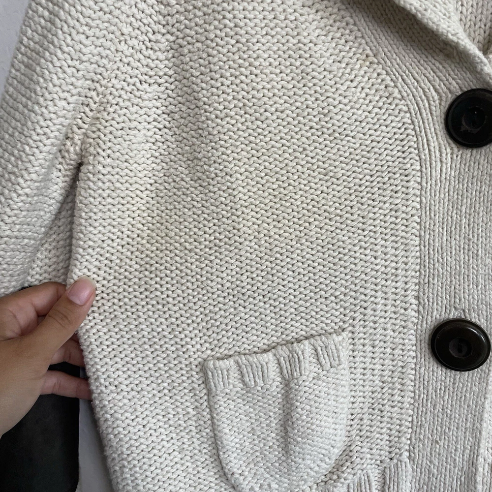 Good pre-owned condition! Flaws: Small spots throughout, marks on one sleeve, and slight pilling throughout. Message for any questions or concerns!