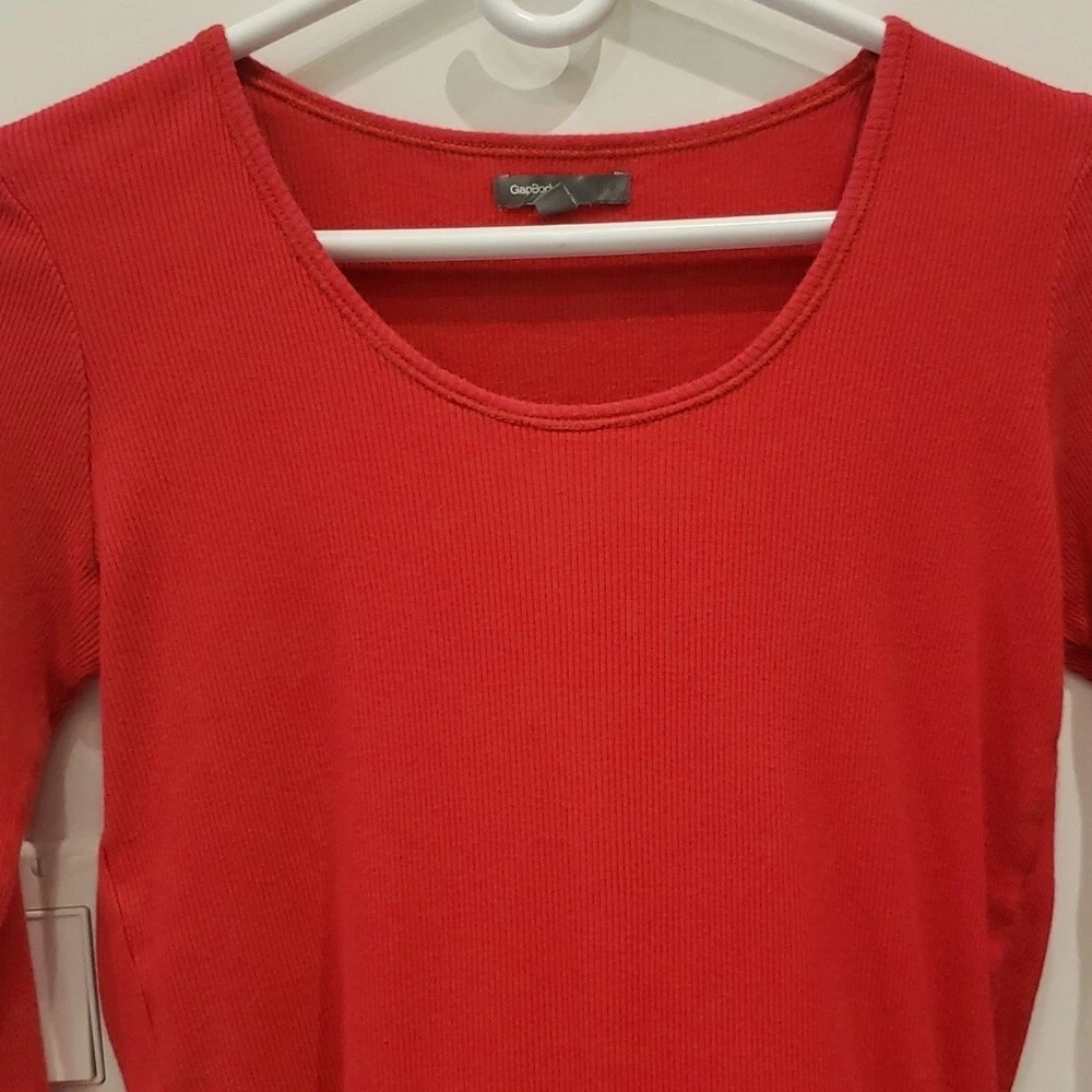 #1607 GapBody Top Red Ribbed Stretch Long Sleeves Women's Small This lovely stretch top is in good condition with minimal wear of some pilling throughout. See photos. Thanks for stopping by.