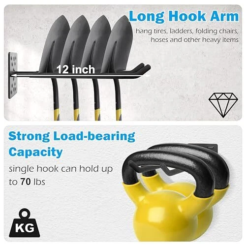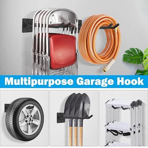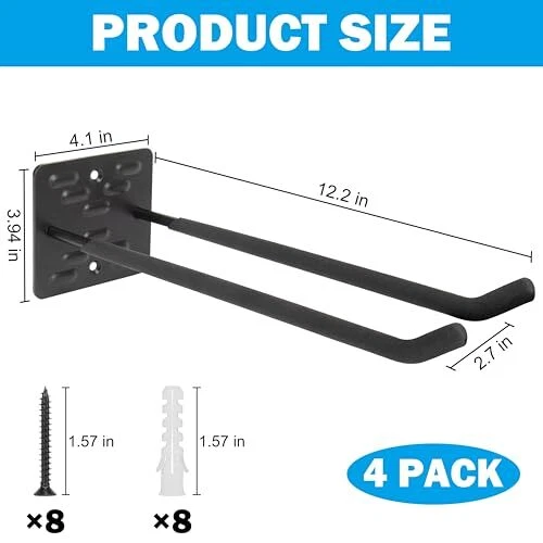Return Policy Fast Delivery Trusted seller Garage Hooks Heavy Duty, 4 Pack Wall Mount Tool Organizer, 12 Inch Length Garage Ladder Hooks, Storage Hanger Utility Hooks for Tires, Chair, Hoses, Power Tools, Garden Yard Tools Product Description 12 Inch Length Garage Hook: Made of heavy duty steel, thickened bracket and double hook design provide greater load bearing capacity, it is the ideal choice to improve garage organization and management, optimize storage solutions. Sturdy & Durability: The surface of the wall mount hook is treated with anti-scratch coating, waterproof and rust-proof, not easy to flake and crack, extending the service life. Covered with non-slip rubber coating to prevent your tools from scratching and slipping off. Multi-purpose Ladder Hook: The garage wall hooks are versatile and can meet your various storage needs, such as power tools, garden tools, tires, ladders, shovels, hoses, folding chairs, bicycles and other large or heavy tools are able to be safely hung. Space Saving: The 12-inch length hook can store more large or heavy tools, whether in the garage, garden, warehouse, utility room. Maximize the use of space while keep the room tidy and neat. Easy to Install: The package includes 4 pack 12 inch wall mount garage hooks, 8 plastic anchors, 8 screws. Suitable for a variety of wall materials, such as concrete, brick walls, wood walls, only need a drill can be easily installed to meet the diverse storage needs. Shipping Returns Payment Shipping Shipping is FREE to all addresses other than APO/PO boxes in the lower 48 states. All our stock ships from US-based warehouses. Shipped via USPS or UPS (depending on location and package weight) Unless stated otherwise, all orders will ship within 24-72 hours of your payment being processed. Check our feedback to see the great reviews of FAST shipping we offer. Returns Seller does not accept returns Payment We currently accept payment via eBay managed payments only. Once payment is cleared, we will dispatch your shipment within 1-3 business days. Please refer to the "Shipping" tab for more information regarding shipping speed to your destination.
