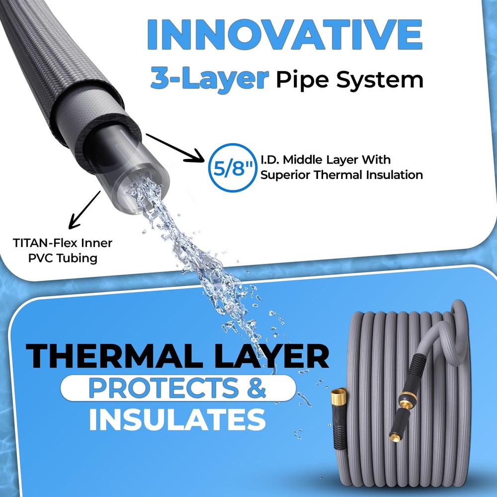 GARDEN HOSE: Unmatched flexibility, durability, and flow. Its lightweight, full-length, Patent-Pending multi-layer design provides reliable, leak-free performance for long-lasting utility. [This hose does NOT expand or retract] EFFICIENT WATERING & CLEANING: This kink-resistant full length hose makes gardening, vehicle washing, and cleaning tasks effortless. Featuring an ergonomic handle and a robust 5/8” middle layer, it delivers strong, steady water flow while remaining static in length, offering stability and reliability for various applications. HIGH PRESSURE TOLERANCE: Designed to work with most pressure washers and sprinklers, the hose excels in handling high-pressure water. Its durable construction with PVC, rubber foam, and polyester outer webbing ensures it resists cracks and leaks, maintaining structural integrity even under intense use. UNIVERSAL COMPTABILITY: With standard GHT 3/4" brass connectors, this hose offers universal compatibility, seamlessly integrating with a wide range of faucets, accessories, and nozzles. Providing efficient watering and cleaning without compatibility issues. [This hose does NOT expand or retract]