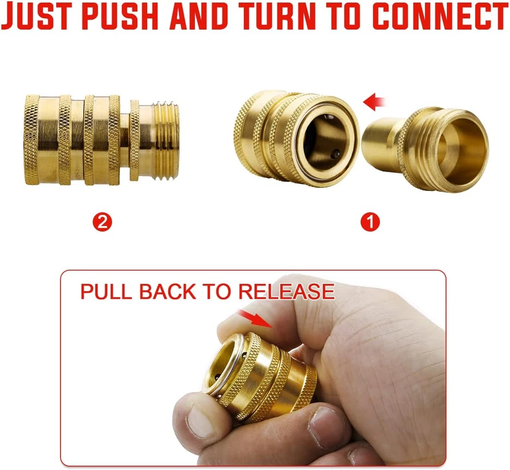 Store New Arrivals Add to Favorite View Feedback Contact Garden Hose Quick Connect Water Hose Fittings - 3/4" Thread - High Grade Brass Durability and Leak Free Upgrade(4 PACK) Description Item model number WALM-GAGU.G0310YO Thread Size ['3/4 inch'] Item dimensions L x W x H 5 x 4 x 1 inches Size 4 Pack Color Yellow Material Brass Material Type Brass Connector Type Adapter Item Weight 15.3 ounces Thread Type GHT Number of Pieces 4 Exterior Finish Brass Product Dimensions 5 x 4 x 1 inches [Universal 3/4" Garden Hose Quick Connector] Designed for garden hose quick connect and water hose connector, compatible with all American SAE standard 3/4 inch garden hose thread. More smooth and close connecting structure and industry-grade o-ring, bring you easy and elegant set up with a garden hose, sprayer, faucets and garden accessories, close match, and non-leak. [Exclusive Design Leak Free] Made with the precision process, stainless 4-ball locking, and Heavy-duty o-ring make plug and socket closely match without leak and better wear resistance than normal brass and coated aluminum. [Heavy Duty and Durability] Designed for long years by industry engineering and guaranty from the high precision process, higher grade brass, durable o-ring, provide you with top-level garden hose quick connector stand up to 600 bursts PSI. [High Purity Material] Highest industrial grade copper material and stainless locking ball with better corrosion resistance and rust resistance, comply with American command lead-free protecting your environment. [Value Service] Please feel free to message us if you have any item or technical problems with water hose fittings, we provide 7X24 hours of customer service. Welcome to check other garden hose accessories at YAMATIC Power Center Store. ( Note: Please don't use a single plug or single socket with another brand for the best close match. ) Product Description ABOUT YAMATIC Focused on the High-End Manufacture of Power Washer, engineering firm, and garden tools over 20 years. Exciting your garden working and industrial engineering. Service you with real quality and real specifications. YAMATIC SOILD BRASS GARDEN HOSE QUICK CONNECT Saving time and enjoy your easy watering job. Add quick-connect functionality that makes your watering job easier. Just attach one half to your hose or water source and the other to any attachment, sprayer, nozzle, and just slide together! Also helpful for those with limited joint mobility and arthritis. Heavy-Duty Solid Brass Construction Attaches to all standard garden water hoses Rust-free and leak-free use for many years Long-lasting garden watering performance Easy to connect & disconnect . PLEASE NOTE: Not fit for pressure washer hose. Material: Lead-Free Brass Thread Size (in.): 3/4 Max. PSI: 200 Maximum Temperature: 140 deg. F Package includes: 4 male and 4 female Couplers 100% SOLID BRASS Hose adapter set expertly crafted from the highest quality, solid brass for ultra-durability UNIVERSAL 3/4 INCH FITTINGS The 3/4" male thread quick connector is fit any hose with a standard ¾ inch female thread The 3/4" female thread quick connector is fit the faucet or water hose splitter. LEAK-FREE HIGH QUALITY O-RING No more dripping, soaked shirts, or wasteful watering. ABOUT US We offer the best prices around on high quality products. Our E-store includes media such as books, movies, music and games while offering electronics, toys, sporting apparel, clothing, tools, general home, garden items and more. SHIPPING We are always working hard to ensure your package arrives as soon as possible. Please understand that some factors like weather, high postal traffic, and the performance of shipping companies are outside of our control. We offer free shipping to the lower 48 states and ship within 2 business days of payment, usually sooner. We do not accept P.O. Boxes. Please provide a physical address. For shipping outside of the continental USA, we only use eBay's Global Shipping Program.The item is shipped to KY and then sent to the rest of the world. International customers are responsible for all duties and taxes. Continue to check out in order to calculate costs for shipping the item to your country. Messages regarding eBay's Global Shipping Program MUST be directed at eBay EXCLUSIVELY. RETURNS We offer a 30-Day Return Policy on items which you are not completely satisfied with. You have the option for a full-refund or an exchange of the item. No returns are available on items shipped outside of the USA. PAYMENT We accept PayPal. CONTACT US This page content is yet to come Please ad us to your favorite seller and visit again later Thank You CUSTOMER SATISFACTION We try our very best to make sure every customer is completely satisfied. If there's a problem, message us! We're happy to help. WE ACCEPT Copyright © 2021 AutoDS. | All Rights Reserved