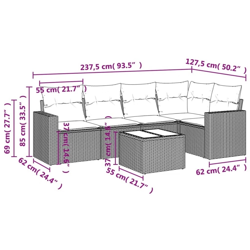 Size: Large This 6-Piece Garden Sofa Set offers a fab mix of style, comfort, and practicality, turning your outdoor area into a welcoming lounge. Perfect for family gatherings or romantic evenings, its sleek design fits right in with any patio, terrace, or garden, giving a nice vibe for chilling and entertaining. Modular Design: Enjoy the flexibility of modular seating, so you can rearrange it to fit your space needs and make it just right for your outdoor setup. Storage Solutions: Each piece features built-in storage for your outdoor essentials, keeping things tidy while adding utility to the set. Durable Materials: Made from top-notch PE rattan, this sofa set is built to last, with powder-coated steel adding extra stability. Comfortable Cushions: Soft polyester-covered cushions provide ultimate comfort, and you can easily remove the covers to wash them for a fresh look. Elegant Finish: The sleek matte finish and black tones give the furniture a classy vibe that fits any outdoor decor, and the glass tabletop adds a touch of elegance perfect for dining and entertaining. Color: Black Shape: Rectangular Material: Synthetic Poly Rattan Finish: Matte Indoor/Outdoor: Indoor / Outdoor Cover Included: No Room: Conservatory Maximum Number of People: 6 Maximum Weit: 242.5lbs Dimensions: 93.5 x 50.2 x 27.2 in (W x D x H) Surface Height: 14.6 in Seat Depth: 21.7 in Seating Capacity: 6 Swings: No Delivery Contains: 1 Corner seat with storage Assembly Required: Yes Recommended Number of People for Assembly: 2