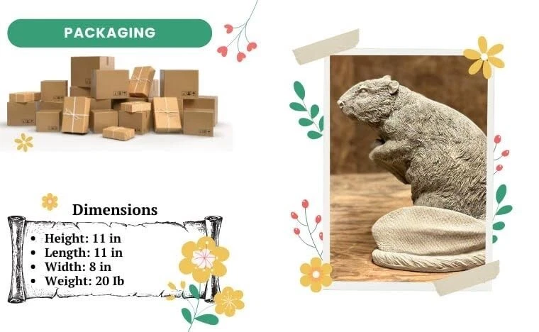 Created with Eselt - Auction Templates for eBay Sellers Outdoor decorations Only high-quality figures for you Send us a message Created with Eselt - Auction Templates for eBay Sellers Created with Eselt - Auction Templates for eBay Sellers - Wild beaver figure Porch ornament - Sitting beaver sculpture Are you looking for an original decor for your garden, terrace or apartment? Or maybe you need an exclusive gift? Come and visit us! We offer a wide range of decorative sculptures. Wonderful beaver with dimensions Height: 11 in Length: 11 in Width: 8 in Weight: 20 lb Our figurines are made of high quality cement. This is a unique product created by hand, not in mass production. Figurines are covered with paint, which creates the effect of artificial aging. Product features: * Handmade; * Resistance to weather conditions. Please note: Figurines are handmade and each one is unique. Therefore, they may vary slightly in shape, color, and texture (so possible air bubbles are not a defect). There may also be slight variations in weight and size. We always strive to maintain the highest standards of quality of materials and products so that the results of our work bring joy to you and your loved ones. Fast and high-quality delivery Customer focus Durability of the figures A unique idea for a gift High quality of materials Created with Eselt - Auction Templates for eBay Sellers Created with Eselt - Auction Templates for eBay Sellers Contact Tell us your phone number and we will call you back Send us a message