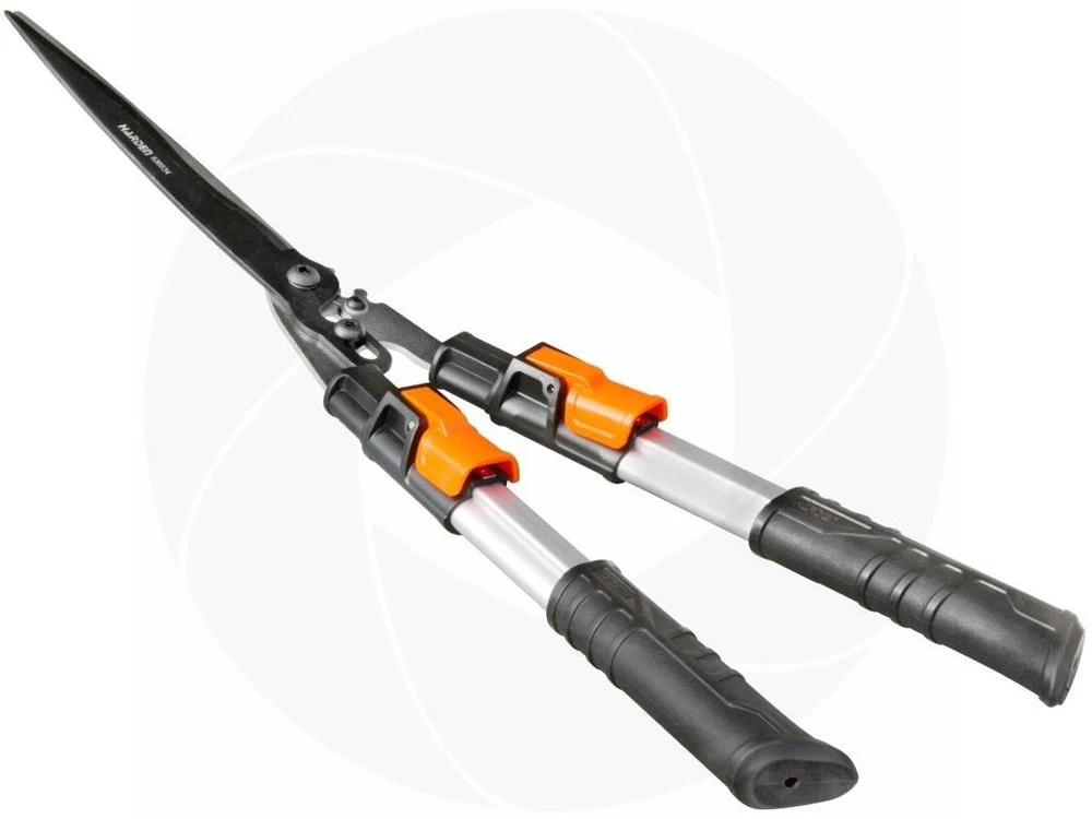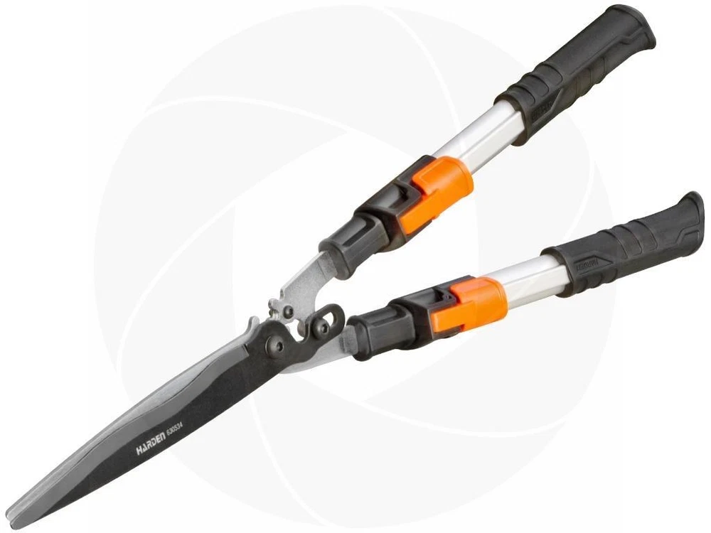 Harden telescopic handle hedge shears make trimming and shaping hedges easier than ever, even when pruning hard-to-reach branches or cutting at awkward angles. Telescopic handles multiply your leverage to make cutting two times easier than using a short version of shears. A telescoping locking handle design extends the shears from 29.5 to 34.5 inches overall length. The 9.3 inch blades are made of hardened steel that is extremely durable and can be sharpened if needed. The handles are lightweight aluminum with rubber handles that provide comfort and secure grip. Features: Telescopic handle design provides more leverage Can be used for trimming bushes, plants and small trees Adjustable from 29.5 to 34.5 inches in length Strong, heat treated, Teflon coated carbon steel blade Rubber non-slip handles provide secure grip and comfort 20 degrees blade offset to the handles forms a labor saving angle Specifications: Brand: Harden Mode: 630534 4mm high carbon steel blade Heat treated Teflon cutting blade Telescopic handles with 3 locking stages Extends from 29.5 to 34.5 inches Blade length if measured from inside 9.3 inches Blade angle: 20 degrees to the handles Color: chrome with orange and black with a scratch resistant finish Comfortable rubber handles Weight: 2.9lbs or 1.32kg Package includes: Harden garden telescoping hedge shears Retail wall hanger Get images that make Supersized seem small. THE simple solution for eBay sellers. Track Page Views With Auctiva's Counter