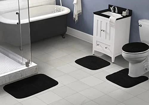 Menu 1. We require immediate payment. 2. We currently accept payment via eBay managed payments only. 3. Once payment is cleared, we will dispatch your shipment within 1-3 business days. Please refer to the "Shipping" tab for more information regarding shipping speed to your destination. Garland Rug Traditional Washable Bath Rug Set, 4 Piece (Toilet Seat Cover,Contour Rug, 21" x34', 17"x24" Bath Rugs) Black Product description 4 Piece Set Includes:Lid (17"x14"), Contour (21"x24"), 2 Bath Rugs (21"x34",17"x24) Ultra-Soft 100% Nylon Fiber: Luxuriously soft and gentle on your feet for maximum comfort. Machine Washable: Simply toss the rugs in the washing machine for easy cleaning. Use cold water on a gentle cycle with mild detergent. Avoid bleach and choose low tumble drying or hang dry. Made in the USA: Proudly crafted in the USA by Garland Rug, ensuring quality and craftsmanship. Non-Slip Latex Backing: The non-slip backing ensures the rugs stay securely in place, reducing the risk of slips and falls—ideal for households with children or seniors. PLEASE MESSAGE US IF YOU HAVE ANY OTHER QUESTIONS, AND MANY THANKS FOR READING ALL OF THIS. Copyright ©#. All Rights Reserved.