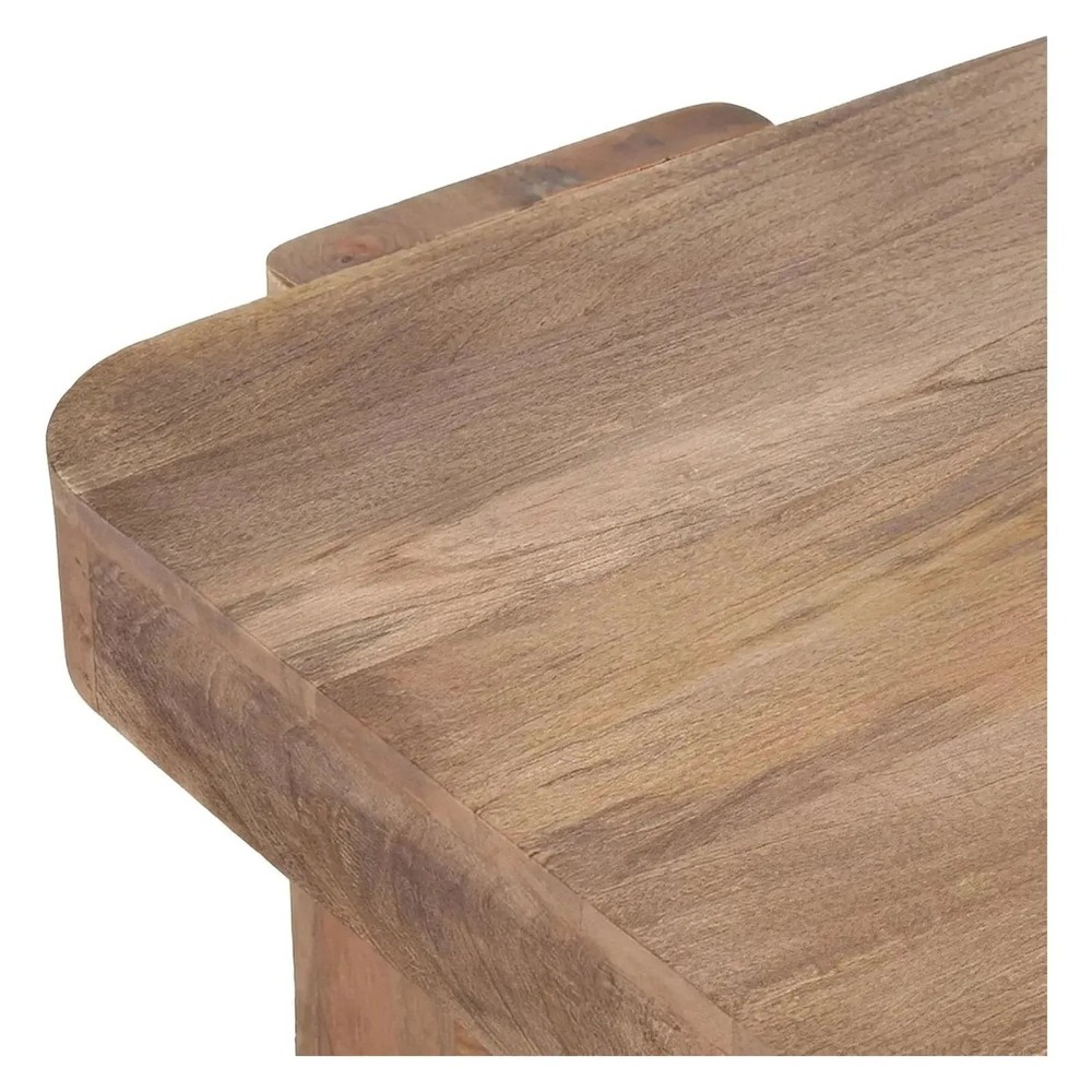 This Cocktail or Coffee Table by CV Collection is a masterful work of craftsmanship with rustic-contemporary appeal. This compelling design is crafted entirely of natural mango wood and features a splendid array of earth tones and texture. The most distinctive characteristic of this piece is the abstract positioning of the pedestal legs. Constructed with a groove and tongue approach, the table consists of two oversized legs displayed on either end of the design for an ultra-modern aesthetic. Look no further than this rustic beauty to elevate your interior. Dimensions: 48 x 29 x 18 (in)