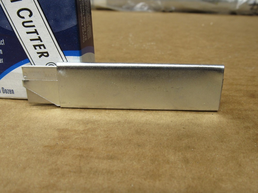 GARVEY Brand, Steel Carton Knife Box Cutter Single Edge Razor Blades 12 pieces. The photo shows 10 pieces, but you will be receiving a box of 12 blades. These will ship USPS First Class Mail. Please check out our Ebay store for other great items...