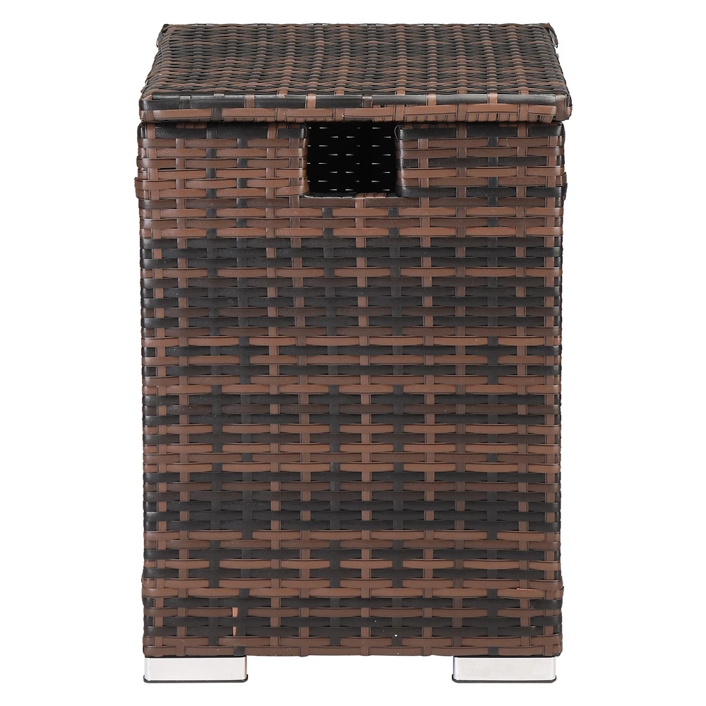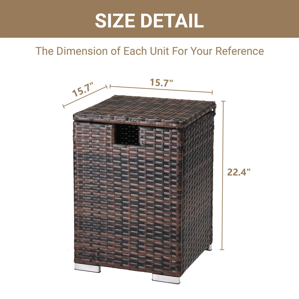 Introductions: Looking for a fashionable side table for daily use? Here I'd like to recommend this40*40*57cm Iron Frame Gas Bottle Storage Rattan Side Table Brown Gradient to you. It is made of high quality material, durable and non-toxic for you daily use. This table with simple design and classical color can be compatible with different room styles. you can place it in your bedroom, living room, guest room, office, bathroom or any other places you want. It is delicate design with beautiful appearance, and gives color to your life. Actually, it is a good decoration to embellish your home. What are you still hesitating about? Order now! Features: 1. Easy to clean 2. Can be used as a side table or to store and display all kinds of stuff in your living space 3. Blend well with modern style decors 4. Perfect size, single layer design ,easy to remove 5. Easy to assemble Specifications: 1. Material: PE Rattan Iron 2. Color: Brown Gradient Rattan 3. Specifications: Overall Size: 40*40*57cm Storage Size: 36*36*47cm Dig Hand Size: 8.5*7.5cm Bottom Iron Frame Size: 32.5*34.5cm Diameter Of The Inner Of The Bottom Hoop: 26cm Foot Pad Size: 10*2.5cm Product Volume: 61L/16 Gallons 4. Load Capacity: 50kg/111lbs 5. Weight: 7kg Package Includes: 1 x Brown Gradient Packable Side Table 1 x Hardware Assembly Accessories 1 x English Instruction Manual
