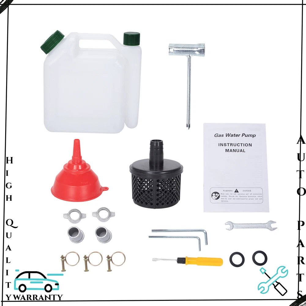 Description Efficient and simple irrigation or drainage methods are one of the pursuits of many farmers, rescue teams, and fruit farmers. This portable water pump is a good choice! It combines high power with a lightweight body, making it easy for you to carry around and start working efficiently wherever you need it. It will be a good helper in the field and a good partner in emergency repair work. Key Features - High Efficiency : It adopts a strong two-stroke engine, with larger and stronger cylinder strength. The 1400W, 40.2cc engine has a maximum speed of 6500r/min, achieving 282.5ft³ hourly flow rate and 98ft lift. With its help, your various irrigation and drainage tasks can be efficiently solved. - Durable & Sturdy: The aluminum alloy pump body, iron frame, and ABS casing all have high hardness, high wear resistance, corrosion resistance, and rust resistance , achieving a longer service life. - Large Fuel Tank & Low Fuel Consumption: The 0.22gal fuel tank allows you to work for a longer time at once, saving you time and effort. A high-quality carburetor ensures a 610g/Kw.h of fuel rate, reducing fuel consumption. - User-friendly Design: The drawstring start, one-click shutdown, and gear controlled speed regulation design simplify various operations while ensuring safety, making it easier and more reassuring for you to use. - Lightweight & Portable: It is lightweight(15.4 lbs) and portable( 14.4(W)*17.7(L)*12.6(H)in ), combined with a convenient handle located in the middle, allowing you to easily lift it with one hand to the place you need and start working. - Safety Guard: The check valve can effectively prevent backflow, providing higher safety for your use. Oil bubbles and visible fuel pipes make it easy to track the delivery of fuel and achieve a safe start-up. - High Stability: The quadrilateral base and enlarged anti-slip pads provide greater stability and effective vibration reduction, ensuring better performance in harsh environments. - Silencing Hood: The internal silencing hood effectively alleviates the noise generated during operation, maintaining noise within an acceptable range without affecting other activities. - Protective Packaging: This product comes in a custom air column bag that resists common compression and falls to prevent product damage in transit as much as possible. Details -Heat Dissipation Holes: Widely distributed and efficient heat dissipation holes can quickly dissipate the heat generated by the machine during operation, preventing damage caused by high temperatures and ensuring stable operation. - Air & Water Filters: The filters can effectively isolate impurities in water and air, prevent blockage of water pipes and water pumps, and improve the working efficiency. - Large Diameter Inlet/Outlet: The 1-inch large diameter inlet/outlet can be paired with most of the water pipes on the market, with high universality and more effective use. - Drainage Port: It can easily discharge excess water and impurities from the pump, extending its service life. Application It can provide reliable drainage or irrigation solutions for homeowners, farmers, construction personnel, etc. It is mainly used for pumping irrigation of vegetable gardens and flower beds, garden lawns, outdoor pumping and drainage operations, irrigation and fertilization of crops and green seedlings, flood control and drainage, tunnel drainage, etc. Specifications Material: Aluminum Alloy, Iron, ABS Color: Black, Red, Grey Style: Modern Assembly Required: Yes Engine Type: Single Cylinder, Air-cooled, 2-stroke Number of Items: 1 Displacement: 40.2cc Max. Lift: 30m/98ft Max. Suction: 7m/23ft Max. Power: 1400W Max. Speed: 6500r/min Gasoline: No.90 and Above Flow Rate: 8m³/ 282.5ft³/ H Fuel Tank Capacity: 0.85L/0.22gal Inlet/Outlet Diameter: 2.5cm/1in Fuel Consumption Rate: 610g/1.34lbs/Kw.h Fuel Type: Mixed Oil (25 Gasoline : 1 2-stroke Engine Oil) Gross Weight: 9.79kg/21.6kbs Net Weight: 8.91kg/19.6lbs Product Size: 40*28*30cm/15.74*11*11.81in Package Size: 40*33*33cm/15.74*13*13in Package Included 1*Water Pump 1*Fuel Oil Mixing Bottle 1*Tool Kit 1*Filter 1*Funnel 1*Extra Air Filter 1*English Manual All Accessories for Assembly Notes Please carefully read the manual and strictly follow the precautions to have a better experience. Please use #90 or above gasolin e for this product and mix it with two-stroke engine oil in a ratio of 25:1. Please note that water must be added to this product before use. Before starting the machine, please check if the machine is complete and check the coupling to see if the internal drive is damaged. After using, please idle for 2-3 minutes and wait for the engine temperature to decrease before turning it off to improve its service life. Please drain the fuel tank when not in use for a long time. Please allow the slight color difference caused by the shooting light and 1-3cm error due to manual measurement, and make sure you do not mind before you order.