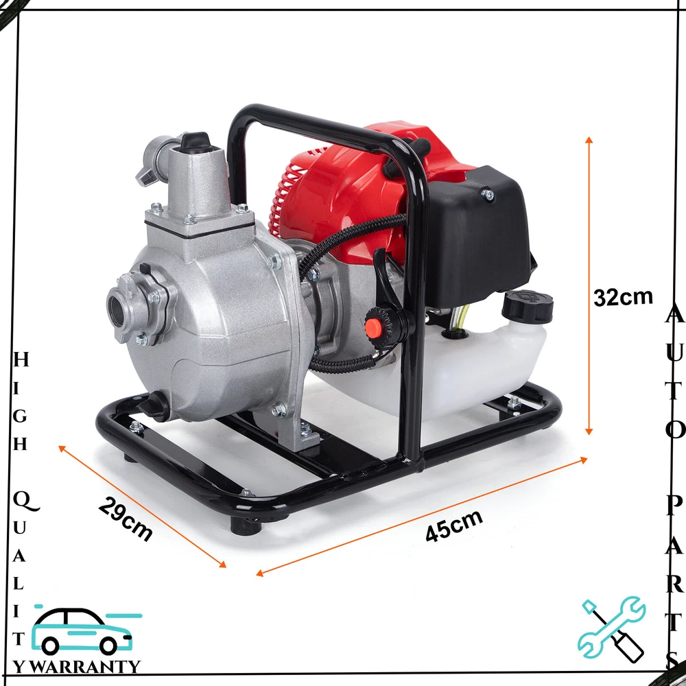 Item Height: 32CM 1Feature:: Exquisite appearance,Durable material Characteristic: easy to use Features1: stable performance,Durable UPC: Does not apply Manufacturer Warranty: 3 Years MPN: Does Not Apply EAN: Does not apply Maximum Flow: 8,000L/hour Assemble require: yes Maximum suction range: 6-8m Fuel ratio: 25:1 Item Width: 29CM Maximum flow rate: 8-10m³ /h Bundle Listing: Yes Item location: CA /NJ /Austell Water pump inlet: 1” (25mm) Energy Star: Not Compliant gtin13: Does not apply Starting System: Recoil pull start Maximum Lift: 20m *Feature-2*: Easy Operation Brand: Unbranded Note: Minimal Assembly required Water Pump Outlet: 1” (25mm) Installation: Universal Installation Surface Finish 1: Made of high quality material Item Weight: 7kg Maximum Working Pressure: Does not apply Fuel Capacity: 1.0L Features: Durable Maximum Output: 1.25kw/6500 rpm Type: Transfer Country/Region of Manufacture: China Horse Power: 1.7HP Maximum Suction Lift: 7m Item Length: 45CM Maximum Delivery Lift: 30m