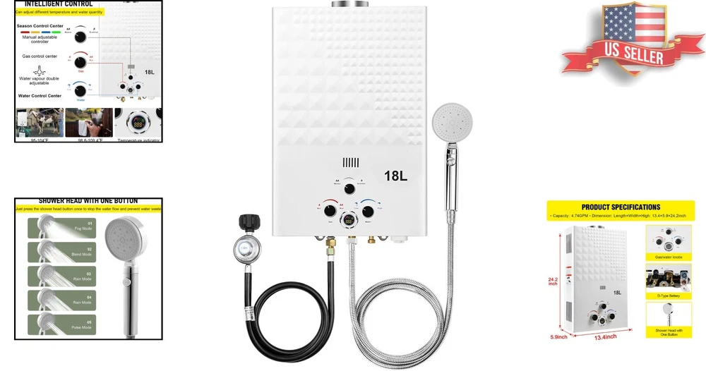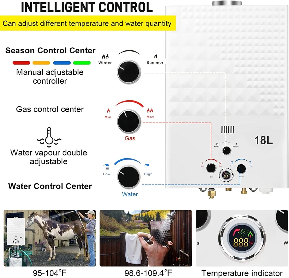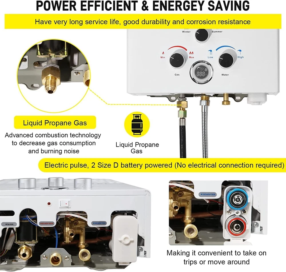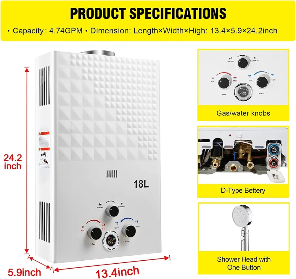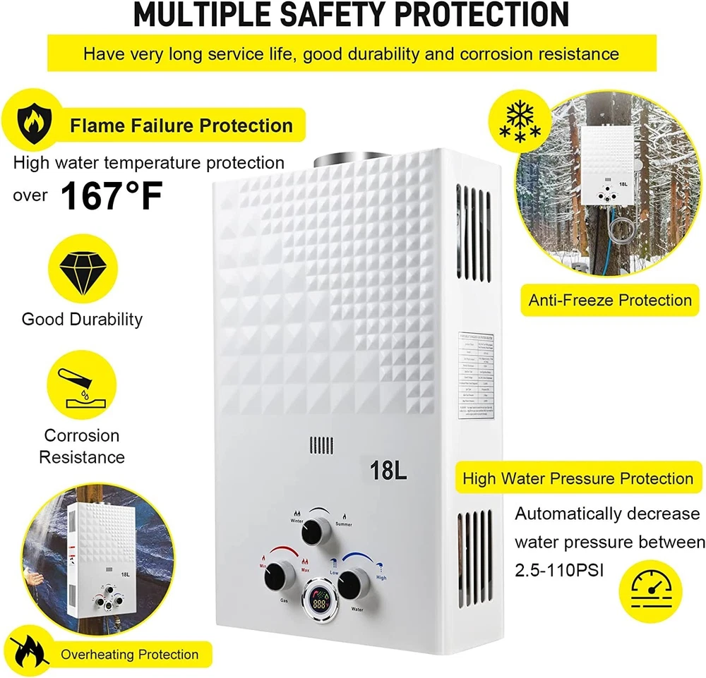 Gas Water Heater - CSA Approved, Multi-Protection - 18L, 4.74GPM for Camping ‹ › ‹ › ‹ › ‹ › ‹ › ‹ › ‹ › ‹ › ‹ › ‹ › Gas Water Heater -CSA Approved, Multi-Protection -18L, 4.74GPM for Camping Features: Tankless Water Heater with CSA Approved Regulator Flame failure device, anti-freezing protection, over heating protection Just need 3.6PSI of water pressure, 4.74 gallons of hot water can be output per minute Maximum temperature raise is 167 °F Advanced combustion technology to decrease gas consumption and burning noise Maximum power output 68,000btu/hour Compact and lightweight structure with 11.5% energy saving technology Portable design with battery power Complete accessories including gas regulator, shower head, hose, and holder Wide usage for outdoor activities and pet washing Benefits: Safe and reliable with multiple protection features Efficient and energy-saving with advanced combustion technology Instant and endless hot water wherever you are Portable and easy to carry for outdoor activities Complete accessories for a comfortable shower experience Wide usage for various outdoor activities and pet washing Why choose our Gas Water Heater? Are you tired of cold showers during your outdoor adventures? Look no further than our Gas Water Heater, designed with advanced combustion technology to decrease gas consumption and burning noise. With multiple protection features and a maximum power output of 68,000btu/hour, you'll get instant and endless hot water wherever you are. Plus, with a portable and lightweight design, you can easily carry it for outdoor activities and pet washing. Don't miss out on this must-have outdoor accessory - order your Gas Water Heater today! Shipping Free & Fast Shipping - We offer free shipping to most of the USA with a normal delivery time of 3-7 days. However, due to the current situation, additional delivery time (up to 3 weeks) may be required for some items. Alternative Carriers - We may use alternative carriers (e.g. USPS, FedEx, UPS, etc.) to ensure your package arrives safely and on time. Due to the use of multiple carriers, we are unable to provide a tracking number automatically. Handling Time - Orders are processed and shipped within 1-2 business days of receiving cleared payment. Shipping Restrictions - Shipping to Alaska, Hawaii, Puerto Rico, Guam, and other US territories may incur shipping charges or delivery restrictions. Please contact us before ordering, or your order can be refunded/cancelled. State Restrictions - There may be restrictions based on your state of purchase. For example, certain items may not be shipped to California due to state regulations. Contact for Tracking Updates - If you require tracking updates or have any concerns about the delivery of your order, please feel free to contact us, and we will be happy to assist you. Return 30-Day Hassle-Free Returns - We want you to be completely satisfied with your purchase. If you are not, you can return the item within 30 days of receiving it for a full refund or exchange. Easy Return Process - To start a return, simply contact us and we will provide you with a prepaid return shipping label and detailed instructions. Restocking Fee - There are no restocking fees for returns. However, the buyer is responsible for return shipping costs if the return is not due to a seller's error. Refund Processing Time - Refunds will be processed within 5 business days of receiving the returned item in its original condition. Payment We accept all major credit cards, PayPal, and Apple Pay for your convenience. Your payment information is secure and encrypted to ensure a safe and seamless transaction. Please complete your payment within 3 days of purchase to avoid any delays in shipping. Feedback Your feedback is extremely important to us. We strive to provide the best products and customer service possible. If you are satisfied with your purchase, please take a moment to leave us a positive review. If you have any concerns or issues with your order, please contact us before leaving negative feedback. We are committed to resolving any problems and ensuring your satisfaction. Contact Us If you have any questions or concerns, please feel free to reach out to our customer support team. You can contact us through the eBay messaging system. We are available Monday to Friday, 9:00 am to 5:00 pm EST, and we will do our best to respond to your inquiry within 24 hours. Thank you for supporting our small family business!