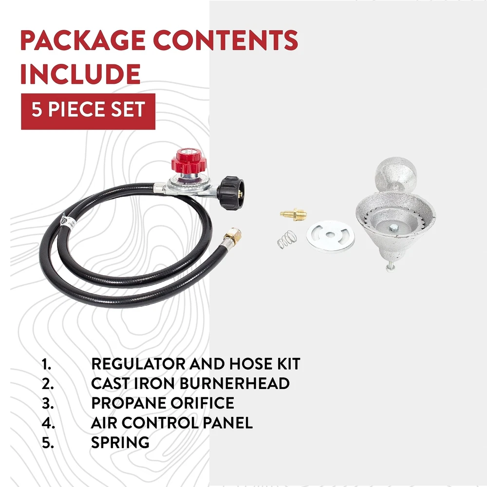 GasOne 50200+2109 High Pressure Cast-Iron Round Burner Head with Brass Fitting O, Regulator & Hose Product Details Size: Burner Head + Regulator & Hose Brand: Gas One MPN: 50200+2109 UPC: 859176001119 EAN: 0859176001119 Brand: Gas One Fuel Type: Liquefied Petroleum Gas Material: Aluminum Product Dimensions: 8.5"L x 3.3"W x 2.3"H Power Source: Propane Item Weight: 1.5 Pounds UPC Global Trade Identification Number: 19 Brand: Gas One Fuel Type: Liquefied Petroleum Gas Material: Aluminum Product Dimensions: 8.5"L x 3.3"W x 2.3"H Power Source: Propane Item Weight: 1.5 Pounds UPC: 859176001119 Global Trade Identification Number: 19 Item Weight: 1.5 pounds Manufacturer: GAS One Country of Origin: China Item model number: 50200+2109 Is Discontinued By Manufacturer: No Includes - cast iron high pressure burner head and 0-20 psi high Pressure regulator and 4 ft hose Universal replacement burner - With our gas one burner head, you can use it with high pressure or low pressure regulators (high pressure regulator is recommended for high output) Brass fitting orifice Block - includes brass fitting orifice Block & air Shutter and spring Heat resistant - cast iron will not melt easily compared to aluminum construction To be used with propane only Universal replacement burner - with our gas one burner head, you can use it with high pressure or low pressure regulators (high pressure regulator is recommended for high output) brass fitting orifice block - includes brass fitting orifice block & air shutter & spring heat resistant - cast iron will not melt easily compared to aluminum construction