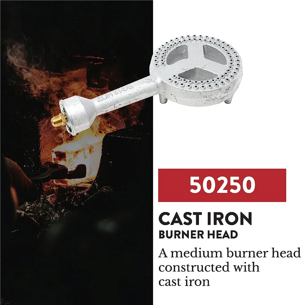 UNIVERSAL REPLACEMENT BURNER - With Our Gas One Burner Head, You can use it with high pressure or low pressure regulators (High Pressure Regulator is recommended for high output), Good for DIY projects to build your own burner BRASS FITTING ORIFICE BLOCK - Includes Brass Fitting Orifice block & Air shutter and Spring, Very safe and easy to use, long-lasting and clean HEAT RESISTANT - Cast Iron will not melt easily compared to aluminum construction, Good for burners, Extremely sturdy and has high-quality build Fits - Gas One Propane Burners, Bayou, King Cooker, Camp Chef and all Majority of the Propane Burners NOTES-To be used with Propane Only There's no limits on creating your dream propane burner. It's a jump up from a childhood lego set into a customized stove. Our 50250 Cast Iron Burner head will accompany you to wherever your imagination takes you!