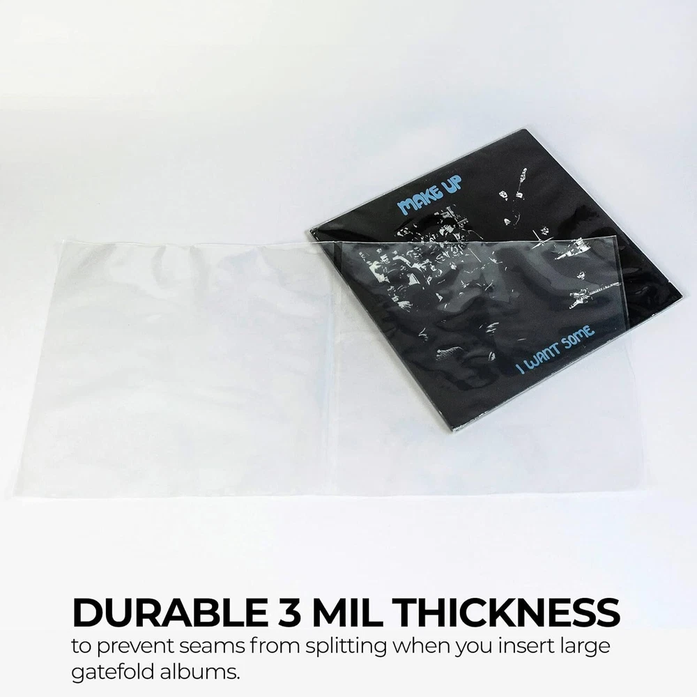 Gatefold Outer LP Sleeves for 12 Inch Vinyl Record Storage | 3 Mil Thick Poly... PREMIUM THICKNESS: Durable 3 Mil POLYPROPYLENE ensures strong seams on your vinyl record outer sleeves covers. The slick poly material prevents albums from sticking or clinging to each other, insuring functional album storage. CLEAR VIEWING: Enjoy your album cover artwork (both the outside and inside fold) with protective poly outer records sleeves that are clear and don't cloud or obscure the artwork. EASY ACCESS TO LP RECORDS: Open slits on each end allow you to easily remove and insert vinyls from their album covers without needing to remove the clear outer sleeve. KEEP IT CLEAN: Keep your favorite vinyl record cleaner with a protective sleeve to reduce dust, dirt and moisture from entering your album jacket. Outer record sleeves help you preserve your album in its complete fidelity! Shipping We offer FREE shipping on all orders! We ship within Three business days of payment, usually sooner. We use a selection of shipping services such as UPS, FedEx, USPS etc. We only ship to the lower 48 states, no APO/FPO addresses or PO Boxes allowed. Local pickups and combined shipping options are not provided at this time. Return You can return a product for up to 30 days from the date you purchased it. Any product you return must be in the same condition you received it and in the original packaging. Please keep the receipt. Payment We accept payment by any of the following methods: PayPal Please pay as soon as possible after winning an auction, as that will allow us to post your item to you sooner! Feedback Customer satisfaction is very important to us. If you have any problem with your order, please contact us and we will do our best to make you satisfied. Contact Us If you have any queries, please contact us via ebay. We usually respond within 24 hours on weekdays. Please visit our eBay store to check out other items for sale! Thank you for shopping at our store.