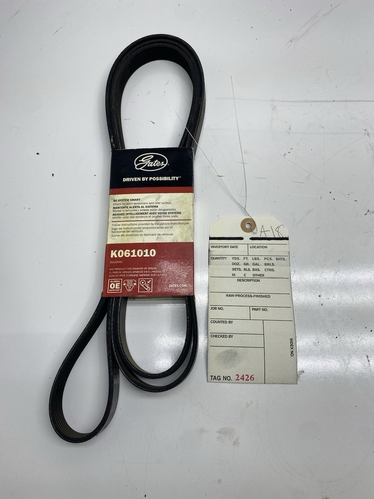 The Gates K061010 FleetRunner Micro-V Serpentine Belt is a high-quality replacement part designed for car and truck vehicles. Manufactured by Gates, a trusted brand in automotive parts, this serpentine belt features a green stripe for easy identification. With the manufacturer part number K061010, this belt offers durability and reliable performance for your vehicle's accessory belt system. Ideal for those in need of a new serpentine belt, this Gates product is a dependable choice for automotive maintenance and repair.