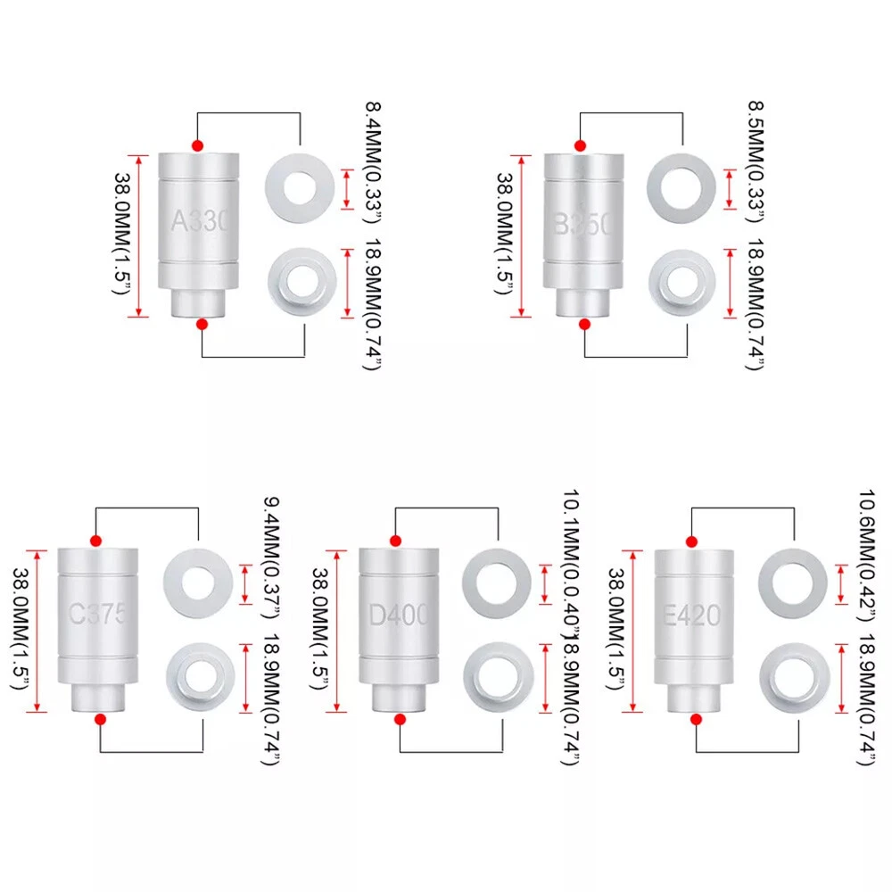 Feature 【Product Name】Gauge Body with 5 Bushing Set 【Size】As the pictures show 【Color】Silver 【Material】Aluminum 【Quantity】1 Set Specification 【Compatible Models】 For A330, C375, D400, B350 and E420,Compatible with Checking Most Bottlenecks. 【Funtion】 Improve the accuracy of measuring bottlenecks,More accurate measurement of changes in the firing or size adjustment of brass,Extends brass life. 【Easy to use】 How to determine the proper bushing diameter: Add the neck diameter and shoulder diameter and divide that number by 2, use the bushing that is closest to that number. 【High Quality】 Made of high quality Aluminium, high reliability and accuracy, tested several times before leaving the factory, meeting or exceeding OEM standards. Fitment:For A330, C375, D400, B350 and E420,Compatible with Checking Most Bottlenecks. Package included: 1* Gauge Body with 5 Bushing Set Note Manual measurement may exist 1-2cm error, please understand Please be reminded that due lighting effects, monitor's brightness/contrast settings etc, there could be some slight differences in the colour tone of the website's photo and the actual item.