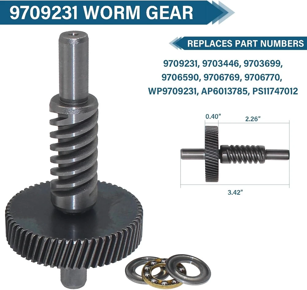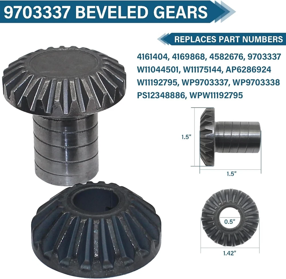 Worm Gear Kit Compatible With KitchenAid Whirlpool 5QT & 6QT Mixer Gear Parts Replacement, Worm Follower Gear Kit 9706529 W11086780 9709511 9703337 9709231 【worm gear kit includes】1 x 9709511 Gasket; 1 x 9703445 Thrust Bearing; 1 x 9709231 WP9709231 Worm Gear; 1 x 9703337 9703338 Mixer Bevel Gear Kit; 1 x 9706529 W11086780 Worm Gear& Snap Ring; 1 x Retaining Ring Pliers. 【9706529 Worm Gear Replaces part numbers】9709511, 9706529, 9703543, 1094120, 1426121, AP3594375, AP6013715, AP4326018, AP6013805, AH774065, AH1488426, EA774065, EA1488426, WP9706529, PS774065, PS11746942, PS1488426, PS11747032, PS11746905 【9703337 Beveled Gears Set Replaces Part Numbers】4161404, 4169868, 4582676, 9703337, W11044501, W11175144, AP6286924, W11192795, WP9703337, WP9703338, PS12348886, WPW11192795 【9709231 Worm Gear Replaces Part Numbers】9709231, 9703446, 9703699, 9706590, 9706769, 9706770, WP9709231, AP6013785, PS11747012 【9709511 Gasket Replaces part numbers】9707425, 9703381, WP9709511, AP6013805, PS11747032; 9709511 Gasket Fits for all 5.5 and 6 quart KitchenAid stand mixers
