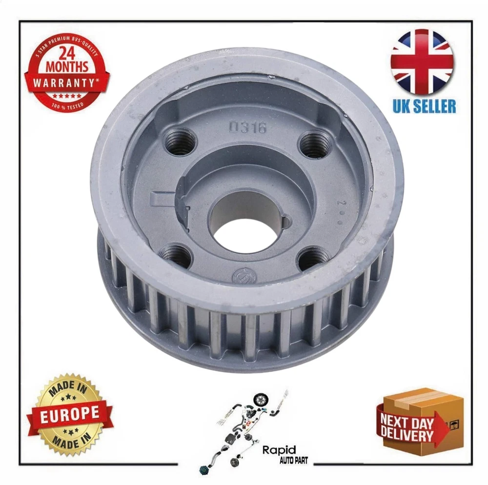 GEAR PULLEY TIMING CRANKSHAFT FOR FIAT 500L 500X BRAVO CROMA IDEA PUNTO 55238739 DESCRIPTION CRITERIA Number of Teeth: 26 Height [mm]: 29.5 Outer diameter [mm]: 65 COMPATIBILITY PERFECT REPLACEMENT & FITMENT FIAT 500L (351_, 352_) TYPE CONSTRUCTION YEAR KW HP CC ENGINE CODE(S) 0.9 (199LYC1B) from 09.2012 77 105 875 199 B6.000 0.9 Natural Power (199LYC1B) from 03.2013 63 86 875 312 A2.000 0.9 Natural Power (199LYC1B) from 04.2017 59 80 875 312 A2.000 1.3 D Multijet (199.LYM11, 199.LYM1A) from 06.2014 70 95 1248 330 A1.000 1.3 D Multijet (199LXY1A, 199LXY11) from 09.2012 62 84 1248 199 B4.000 1.4 (199LYB1B) from 09.2012 70 95 1368 843 A1.000 1.4 (199LYF1B) from 10.2013 88 120 1368 940 B7.000 1.4 LPG (199LYF1B) from 02.2014 88 120 1368 940 B7.000 1.6 D Multijet (199LYD1B) 09.2012 - 05.2018 77 105 1598 199 B5.000 1.6 D Multijet (199LYE1B) from 09.2013 88 120 1598 940 C1.000 955 A3.000 552 80 444 500X (334_) TYPE CONSTRUCTION YEAR KW HP CC ENGINE CODE(S) 1.0 (334.AXN1B) from 06.2018 84 114 999 552 82 151 1.0 (334.AXN1B) from 09.2018 88 120 999 552 82 151 1.3 (334.AXR11) from 09.2018 110 150 1332 552 82 328 1.4 4x4 (334AXF22) 02.2015 - 09.2018 120 163 1368 552 63 623 1.4 4x4 (334AXF22) from 02.2015 125 170 1368 552 63 623 1.4 LPG (334AXL1B) 03.2017 - 09.2018 88 120 1368 552 77 701 1.6 D Multijet (334.AXV1B) from 05.2021 96 130 1598 463 46 020 2.0 D Multijet 4x4 (334AX) 09.2018 - 09.2020 110 150 1956 552 63 088 BRAVO II (198_) TYPE CONSTRUCTION YEAR KW HP CC ENGINE CODE(S) 1.9 D Multijet (198AXE1A) 04.2007 - 12.2008 66 90 1910 192 B5.000 CROMA (194_) TYPE CONSTRUCTION YEAR KW HP CC ENGINE CODE(S) 1.8 16V (194AXG1A) 12.2005 - 12.2011 103 140 1796 939 A4.000 1.9 D Multijet 06.2005 - 12.2011 85 115 1910 939 A7.000 1.9 D Multijet 12.2005 - 10.2007 100 136 1910 939 A8.000 1.9 D Multijet (194AXB1B) 06.2005 - 12.2011 88 120 1910 939 A1.000 1.9 D Multijet (194AXC1B, 194AXC12) 06.2005 - 12.2011 110 150 1910 939 A2.000 2.2 16V 06.2005 - 12.2010 108 147 2198 194 A1.000 2.4 D Multijet 06.2005 - 12.2011 147 200 2387 939 A3.000 FREEMONT (345_) TYPE CONSTRUCTION YEAR KW HP CC ENGINE CODE(S) 2.0 JTD from 08.2011 100 136 1956 939 B5.000 2.0 JTD from 08.2011 103 140 1956 939 B5.000 940 A5.000 2.0 JTD from 08.2011 120 163 1956 939 B5.000 2.0 JTD from 08.2011 125 170 1956 940 A5.000 939 B5.000 2.0 JTD 4x4 from 08.2011 120 163 1956 939 B5.000 2.0 JTD 4x4 from 08.2011 125 170 1956 940 A5.000 939 B5.000 2.Nis from 08.2011 125 170 2360 EDG ED3 3.6 4x4 from 08.2011 206 280 3604 ERB IDEA (350_) TYPE CONSTRUCTION YEAR KW HP CC ENGINE CODE(S) 1.3 D Multijet 05.2008 - 12.2012 70 95 1248 199 B1.000 PUNTO EVO (199_) TYPE CONSTRUCTION YEAR KW HP CC ENGINE CODE(S) 1.3 D Multijet 07.2008 - 02.2012 51 69 1248 199 B2.000 SEDICI (189_) TYPE CONSTRUCTION YEAR KW HP CC ENGINE CODE(S) 1.9 D Multijet 06.2006 - 10.2011 88 120 1910 D19AA 1.9 D Multijet 4x4 06.2006 - 10.2011 88 120 1910 D19AA STILO Multi Wagon (192_) TYPE CONSTRUCTION YEAR KW HP CC ENGINE CODE(S) 1.6 16V 03.2005 - 12.2007 77 105 1598 192 B3.000 TIPO Saloon (356_, 357_) TYPE CONSTRUCTION YEAR KW HP CC ENGINE CODE(S) 1.3 D (356SXB1A, 356SXH1A, 356SXD1A) 10.2015 - 10.2020 70 95 1248 552 83 775 199 B1.000 552 66 963 1.4 (356SXA1B) 10.2015 - 10.2020 70 95 1368 843 A1.000 1.6 (356SXE11) 10.2015 - 10.2020 81 110 1598 552 68 036 1.6 D (356SXG1B) 10.2015 - 10.2020 88 120 1598 552 60 384 940 C1.000 OEM&OE NUMBER Check your old part against the picture and also check its OEM&OE Part Number before BUYING 55238739, 55183525