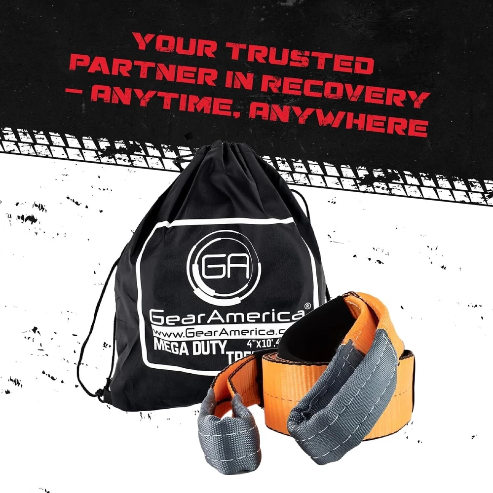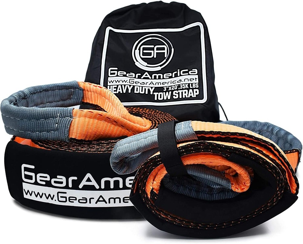 GearAmerica Tree Saver + Tow Strap Bundle – 3" x 8' and 3" x 20' – 35,053 lbs Tons Tow Rope Recovery Straps Offroad – Weather Resistant Recovery Rope + Triple Reinforced Loops Towing Strap AMERICAN OWNED AND OPERATED: All GearAmerica products are designed, engineered and tested in the USA. Get the best customer service and hassle-free satisfaction with every purchase; buy with confidence. TACKLE TOUGH TOWING TASKS: With a massive 35,053 lbs MBS (Minimum Break Strength) and 12K lbs WLL (Working Load Limit), this rugged strap is an essential tool for off-roaders, emergency personnel, farmers or anyone needing to haul heavy objects REINFORCED LOOPS WITH PROTECTIVE SLEEVES: Our large double-web-loop ends are padded and reinforced to capably endure the high tension and wear that occurs at connection points and stand the test of time SUPERIOR ALL-WEATHER DESIGN: Made with a unique polyester tube webbing, our straps are the lightest, strongest, and most flexible in the industry and can withstand extreme loads and extreme temperatures (-40°F to 215°F) PEACE OF MIND: All GearAmerica recovery gear include our industry-leading hassle-free promise; the last tow straps you'll ever buy
