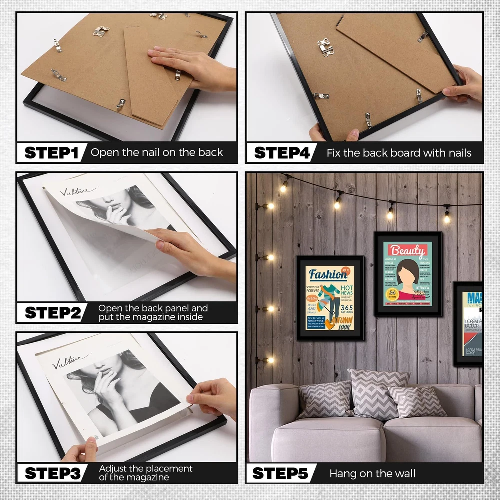 Geetery 4 Pcs Sports Magazine Frame Fits Magazine Measuring 8.5 x 11.25 Inch Magazine Display Frame with Installed Hangers and Core Matting Plastic Frames for Sports Magazines(Black (Black Mat)) Convenient Package: in the package, you receive 4 quality magazine frames; This is ideal for anyone eager to show off a series or a collection of their favorite magazines; Use them to make a coordinated display in hallways, living rooms, bedrooms, offices, or even in cafes and restaurants Suitable Sizing: these magazine frames for wall are designed with dimensions approximately at 11 x 14 inches, acute enough to occupy any space without looking out of place; They are ideally suited for magazines measuring around 8.5 x 11.25 inches; They do not take up unnecessary space while showcasing your favorite features, making them the ideal size for any wall or table display Clear and Engaging Display: thanks to the clear acrylic layer over the magazines, the picture frame represents your items vividly and life like, while also keeping them safe from dust and external breakage, which is safe to use as well; Be it photos, magazines, or certifications, this feature makes you appreciate and reminisce about the moments encapsulated in them better Easy Installation and Stylish Decoration: these picture frame holders come with handy install hangers, making them easy to mount on walls or place on the table, which can be hung vertically or horizontally; Metal picks on the back of the magazine frame that rotate for convenient magazine access; Showcase your style, creativity, and memories in these frames, enhancing your decorations Quality Material: when it comes to displaying your favorite digest, the frames for magazines do not disappoint; They are made of robust PVC material coupled with acrylic layers; These quality materials are known for their durability, ensuring you will be able to enjoy your magazine displays for the foreseeable future; With this material's protection, your magazine's integrity is ensured, preventing tearing, folding, or any other kinds of breakage Features: Stylish aesthetic: The magazine protectors for collectors' aesthetic appeal are as important as their practical usage. The classic color that will subtly complement any decoration setting. Their elegant design adds a touch of charm wherever you decide to put them on display. Broad range usage: The magazine frame display is not limited to showcasing magazines only. You can use them to display photographs, certificates, awards, and other important documents. They make a statement and stand out, depending on their contents and placement location. Specifications: Material: Frame: PVC Layer: acrylic Color: as shown in the picture Size: about 11 x 14 inches, suitable for 8.5 x 11.25 inches magazines Package includes: 4 x Magazine frames Notes: Manual measurement, please allow slight errors on size. The color may exist a slight difference due to different screen displays. Shipping We offer FREE shipping on all orders! We ship within Three business days of payment, usually sooner. We use a selection of shipping services such as UPS, FedEx, USPS etc. We only ship to the lower 48 states, no APO/FPO addresses or PO Boxes allowed. Local pickups and combined shipping options are not provided at this time. Return You can return a product for up to 30 days from the date you purchased it. Any product you return must be in the same condition you received it and in the original packaging. Please keep the receipt. Payment We accept payment by any of the following methods: PayPal Please pay as soon as possible after winning an auction, as that will allow us to post your item to you sooner! Feedback Customer satisfaction is very important to us. If you have any problem with your order, please contact us and we will do our best to make you satisfied. Contact Us If you have any queries, please contact us via ebay. We usually respond within 24 hours on weekdays. Please visit our eBay store to check out other items for sale! Thank you for shopping at our store.