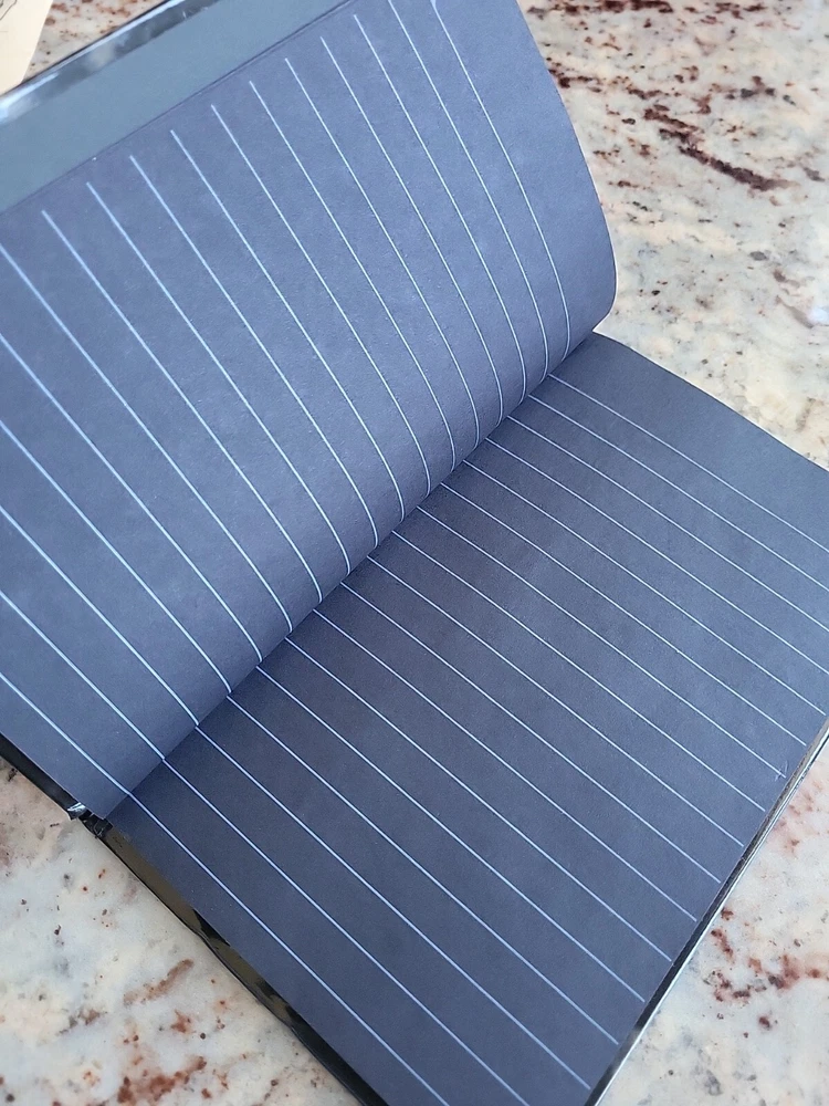 This hardcover Gel Pen Journal from Riverside Paper Company is the perfect item for anyone in need of a stylish and durable journal. With 112 lined black pages, this journal provides ample space for writing and note-taking. The acid-free paper ensures the longevity of your notes and thoughts. The sleek design and high-quality materials used in this journal make it a great addition to any office or workspace. The gel pen compatibility allows for smooth and easy writing, making it ideal for professionals and students alike. This item is new and unused, ready for you to start filling it with your ideas and musings.