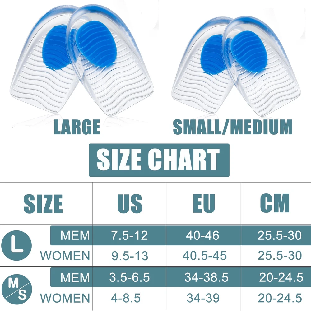 Do You Have Heel Pain , Cracked Heel , Heel Spurs and Tingling ? Do You Have Sore Heel, Plantar Fasciitis When Walking or Running? Do You Want Heel Lift Inserts, Height Increase Insole for Leg Length Discrepancies ? WE'VE GOT YOUR SOLUTION!!! Just put these heel cups in shoes and they will stay in place and keep your shoes from sliding up and down your heel. Besides, it will protect and support your heels from pain, blisters, . Using Method: Step 1: Clean your shoes and make them dry; Step 2: Peel off the plastic film; Step 3: Paste the heel cup to the shoe, adjust the position until you feel comfortable; Step 4: Put on your shoes and enjoy the happiness of walking and exercising. Warm Reminder: If they are not sticky enough after several days use or run into dirt, please don't worry, Just wash them with warm water, let them dry, it will back strong sticky, and you can use them again. Value Pack: Heel pads/cups comes as a set of 4 pairs large gel heel cups ( for Men's US size 7.5-12/ Women's US size 9.5-13),you can put them into your different shoes to enjoy all day comfort. Heel Pain Killer: Designed for those who have foot pain, plantar fasciitis, sore heel, heel pain, heal dry cracked heels, achilles tendinitis,provide supportive heel pain relief. Multi-Function: They are not only heel cups, but also can use as heel lift inserts, invisible height increase insole for leg length discrepancies. Superior Raw Materials: Made of High elastic, durable, heat-resistant, aging-resistant, non-toxic GEL material,more Soft and Comfortable. Just enjoying shopping, exercising. Easy to Use - these shoe heel stickers have self-adhesive backs; Peeling off the back cover, you can stick them on your shoes backs conveniently. Washable and Reusable: If they are not sticky enough after several days use or run into dirt, please wash them with warm water, let them dry, it will back strong sticky, and you can use them again. Wide Application - These heel cups fit for all shoes types such as: high-heels, leather shoes, flats, boots, sandals, loafers, sneakers, slipprs etc.