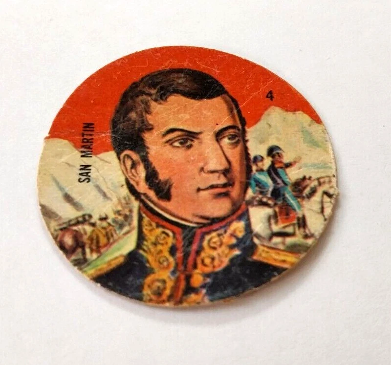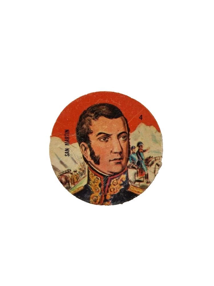 Please note: In order to be competitive and keep low shipping costs all orders under $25 will be shipped as unregistered / untracked international letter- 1966 Figuritas Crack-Campeón Argentina Historical Series Card Disc Pog #4b- José de San Martín-General and Liberator of Argentina, Chile and Perú- Super Rare and hard to find vintage card. Size approx: 40 millimeters/diameter. Cardboard material. In VG-EX condition, unstuck from album with some creases, details and signs of wear, as pictured. Thank you for looking! Please visit my store for similar items!! BUENOS AIRES VINTAGE Actual pictures. Nice condition All items are shipped within 24 hours of payment. Registered mail with tracking number included! SAVE MONEY! WE DO COMBINED SHIPPINGS, PLEASE ASK! Ship worldwide from Buenos Aires, Argentina Protected and safe bubble wrapped package / envelope Buy with confidence! You may find many other collectibles in my store. If you got any question about this or another item, please feel free to contact me! AIR MAIL REGISTERED INSURED to LatinAmerica /USA Europe/Asia/Oceania (Service provided by Correo Argentino. Delivery takes from 12-25 days ) International Buyers Please Note: Import duties, taxes and charges are not included in the item price or shipping charges. These charges are the buyer's responsibility. We can't guarantee the transit time; sometimes the package may be delayed due to countries customs, transit stations, holiday, weather, strikes or other objective reasons, particularly during shipping peak periods. Non-Payment bidder / buyer will be reported to Ebay. Any doubt / question please contact us. Thank you for visit! IF YOU HAVE ANY ISSUES REGARDING THIS TRANSACTION WE ARE WILLING TO SOLVE ANY PROBLEM WITH OUR CUSTOMERS. PLEASE CONTACT US BEFORE LEAVING NEGATIVE FEEDBACK.
