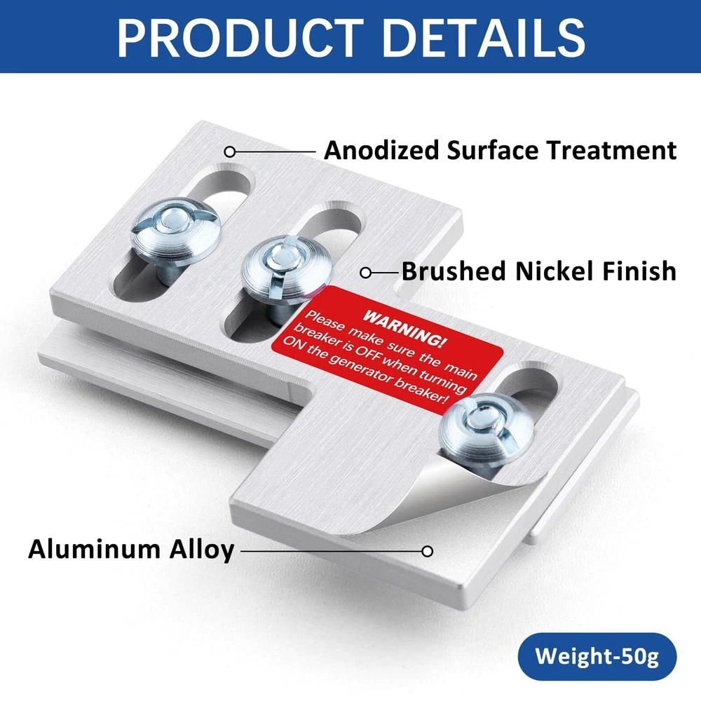⭐️Compatibility: This interlock kit fits Thomas and Betts, Challenger and Westinghouse 150 or 200 amp panels, the spacing between main and the closest generator breaker is 1 to 1 1/8''. ⭐️Durability: The generator lockout kit is made of corrosion-resistant and high hardness aluminum alloy. ⭐️Anodization: Our interlock switch has been treated with surface anodized, electrical insulation, heat insulation, safer. ⭐️Package Content: Interlock x1; safety labels x6; 11.8''generator breaker retainer straps x2; 3/16 drill bit x1; Installation guide x1 ⭐️Note: If the breaker interlock doesn't work properly, DO NOT USE it and contact us immediately for support and instructions!