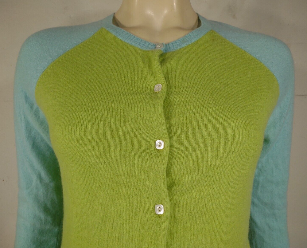 ladies button front cardigan sweater Geneva brand green, blue size M (Please refer to measurements below!) 100% Cashmere Excellent pre-owned condition! No flaws to speak of. Measurements lying flat: Bust (pit to pit): 17.5 inches. Length (from shoulder to bottom hem): 22 inches. Policies and Disclosures: RETURNS: Returns are accepted within 30 days of purchase. Buyer is responsible for return shipping. All items from this store come with an identification tag; Item(s) must be returned in original condition with the I.D. tag intact for a refund. SHIPPING: I do combine shipping when multiple items are purchased. In order to provide you with the least expensive price, you will need to send me a message requesting an invoice with combined shipping. CLOTHING: My goal is to sell only the finest quality new and gently used clothing items in my stores, and I strive for 100% satisfaction with every order. While my home is smoke-free, other pre-owned items from different sources cannot be guaranteed as smoke-free or pet-free. It is assumed that you as the buyer will be cleaning the garment once it arrives to you, so unless there is an obvious stain or odor, the clothing has not been laundered. I felt it was best left up to the buyer so no issues would surface regarding detergent allergies, shrinking, etc. Please note that any must or smoke odors can almost always be completely removed by adding 1 cup of distilled white vinegar to your normal wash cycle. I provide measurements on all my clothing items so that you, as the buyer, can make an informed decision about your purchase. Please use that information to compare it with a garment that fits you well to determine if the item will work for you. Seller will not assume responsibility for return postage on items that do not fit. COMMENTS: Please note that every item I sell is described to the best of my knowledge and ability, however, I am a human being, so occasionally I do make mistakes. Colors may vary slightly between screens and monitors. Sizing can vary from brand to brand. If you have any questions about the item(s), free to ask and I will do my best to get back with you in a timely manner. If you have any issues with your purchase, please do not hesitate to contact me prior to leaving negative feedback so we can try to resolve the issue. I am flexible and easy to work with. If you see something you are interested in, feel free to make a reasonable offer! (On a side note: Lowball offers are insulting and will be declined.) Take a moment to browse my other items for sale. I offer a large variety of items, with new items daily, so there’s something for everyone! Thanks so much for taking the time to look and have a wonderful day!