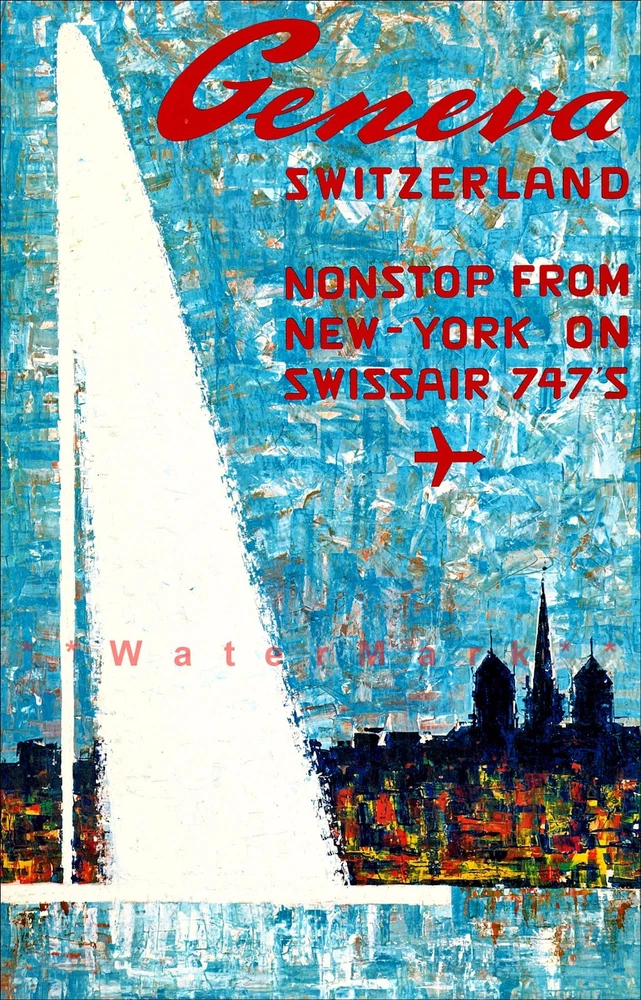 Geneva Switzerland 1970 Airline Travel Sailing Lake Geneva Vintage Poster Print Retro Style Restored Art We offer Free US Postage or Reduced Postage for Canada and worldwide. No Extra Post Charges For Multiples!! **These are not framed or stretched or mounted NOTE:**Delivery dates shown are only "Suggested" Order Early To Avoid Post Delay Dramas **Read Please: The print looks best with a nice mat (passe-partout or Passepartout) and frame. These prints are the exact proportion as the original and will not be stretched to fit the paper or canvas...this would cause a distorted print The image will be the exact aspect ratio as per the original poster, so there might be more white on the top and bottom, or side to side. Options available..use the drop-down menu *Watermark will not be on your image. *Cloth Canvas is an artist's canvas used in museums and art galleries *Photo Gloss Paper is a high-quality Professional Photo paper *Matte Photo Paper is a great solution if you do not want a Gloss, this paper is great with colors *Luster Photo Paper This photo paper is neither glossy nor mat. Glossy paper has a smooth texture, and luster paper is slightly textured. This option is a good choice for something in between Metallic, Photo Gloss, and Matte *Metallic Pearlescent Photo Paper is a very high-quality paper with a Pearlescent sheen, a glossy finish, and a unique metallic appearance, these prints have extra visual interest and depth. This paper uses a combination of film laminate layers that produce striking, dimensional, lasting images on an ultra-bright background. The effect is sometimes described as "chrome on paper." This is NOT a metal plaque, it is a photo paper This poster print will be shipped in a sturdy container. We will ship usually within 24 business hours of payment, except for weekends or US Holidays If there is a question, please do contact me The delivery date given on the listing page is not guaranteed by the post All is done to send you the best quality poster image. Don't forget to check out the Sales. There is a great Buy 3 Get 1 Free Offer!!\ Shipped Worldwide! There are a variety of reasons why the images on your monitors don't match each other. The simplest is that each monitor is different; even monitors with exactly the same model won't have colors that match up perfectly