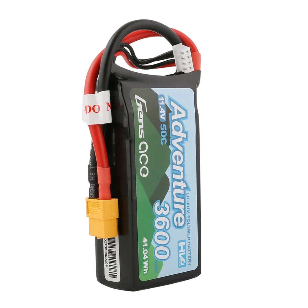 Features: - Higher capacity than comparable size packs - High reliability and High safety. Specifications: - Capacity: 3600mAh - Voltage: 11.4V / 3S / 3 Cell - Discharge Rate: 50C - Max Burst Discharge Rate: 100C - Weight: 215g - Size: 90mm x42 mm x 25mm (L x W x H) - Connector Type: XT60