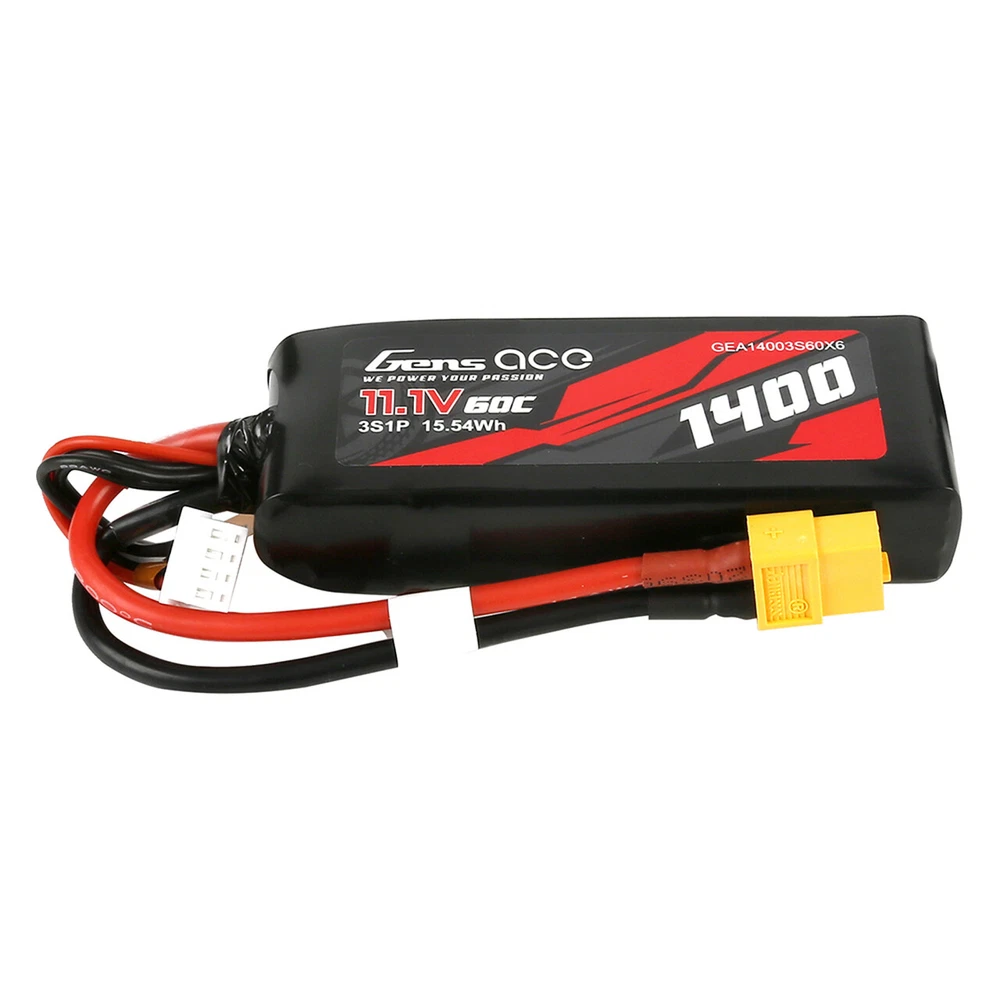 Features: - Stable automatic stacking technology enables single-cell capacities of 1400mAh. - High discharge rate and high reliability. - Superior Japan and Korea Lithium Polymer raw materials. - The battery is with male XT60 plug. - One extra female XT60 plug inside the box for free. Specifications: - Minimum Capacity: 1400mAh - Configuration: 3S1P/ 11.1V - Discharge Rate: 60C - Max Burst discharge Rate: 100C - Net Weight(¡À20g): 131g - Dimensions: 85mm Length x 35mm Width x 20mm Height Application: Gens ace 1400mAh 11.1V60C 3S1P Lipo Battery Pack equipped with an industry-standard XT60 plug. For convenience, there is a female XT60 plug paired to XT60 plug in the package. By changing the plug of the RC models to female XT60 plug, GensAce batteries provide high quality, reliable power for Slash VXL, Slash 4x4 VXL, E-Maxx Brushless, E-Revo Brushless, TRX-4 and Latrax series and Spartan models. And Gens ace 1400mAh 11.1V 50C 3S1P Lipo Battery is specially designed for 1/16 Traxxas Cars by using the paired plug.