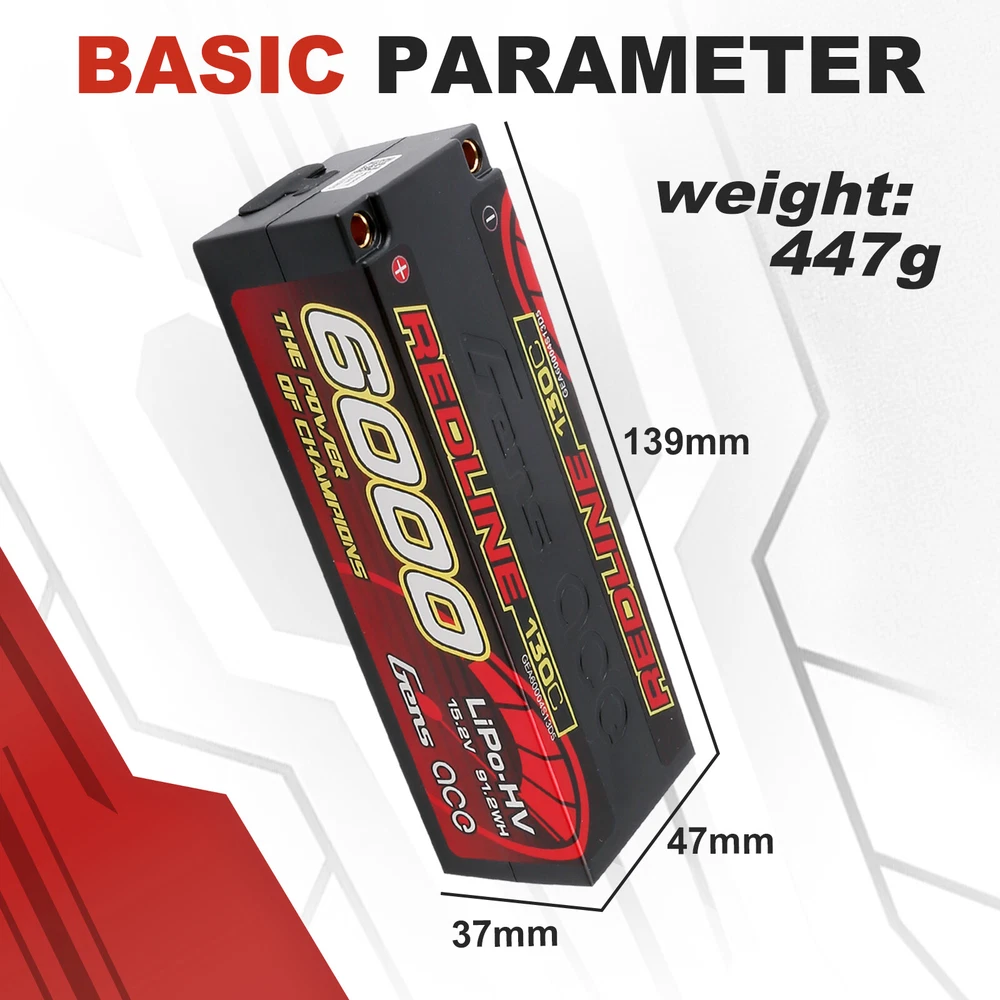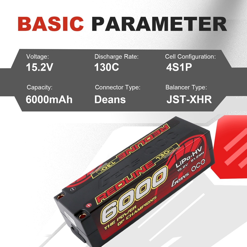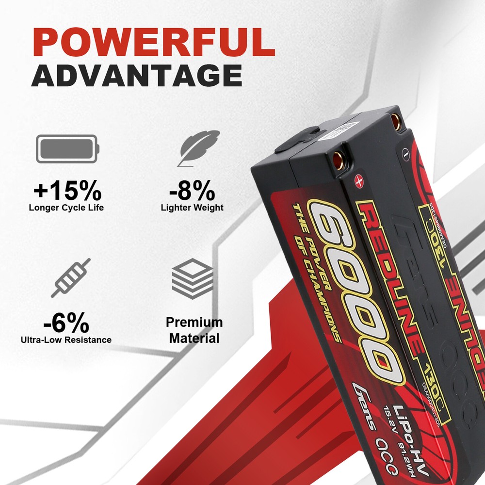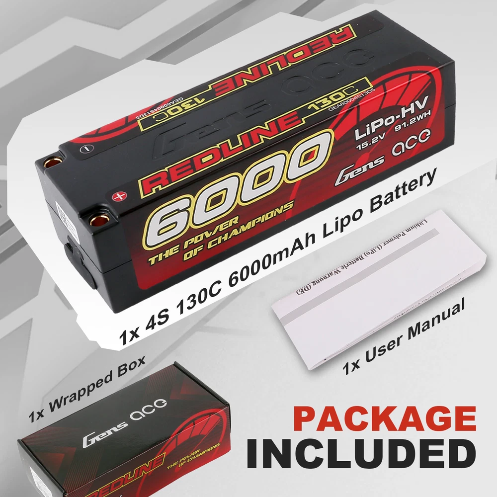 Gens Ace 6000mAh 130C 15.2V 4S Lipo Battery HardCase HV For 1/8 RC Racing Series Gens Ace 6000mAh 15.2V 130C 4S1P HardCase HV Lipo Battery For 1/8 RC Racing Car Gens Ace Redline Series 4S1P 130C 6000mAh Hardcase LiPo Battery Pack with 5.0mm bullet. Consumers trust the Gens Ace name to deliver the dependability and high performance they expect. The Gens Ace 130C 4S1P 6000mAh 15.2V LiPo battery pack has a high-capacity, high-discharge rate that gives you the power and run-time you expect from all Gens ace,RC car lipo batteries. Features: Stable automatic stacking technology enables single cell capacities of 6000mAh. The most strict single cell capacity, voltage, resistance, discharge curve matching process. Superior Japan and Korea Lithium Polymer raw materials. Specifications: Capacity: 6000mAh Voltage: 15.2V / 4S1P / 4 Cell Discharge Rate: 130C Max Burst Discharge Rate: 260C Weight: 447g Size: 139mm x 47mm x 37mm (L x W x H) Connector Type: 5.0mm bullet Our Advantage: 1.Your orders will be dispatched via FedEx or UPS from the USA directly. 2. Fast shipping and excellent local after-sale service guaranteed in the USA. 3. Energy Density:Specially adapted to each UAV type and RC car/boat/heli type. Very High according to capacity/weight. In fact, we are specialists in High Power Lipo Batteries. It is our unique technology, the highest power of our battery is 100C. Another technology is our batteries are able to be stably discharged simultaneously. 4. Low IR: Provides stable voltage until the end of your mission. 5. Safety: Gens Ace and its partners fulfill the ISO9001, ISO14001, standards. Package included: 1X Gens Ace 6000mAh 15.2V 130C 4S1P HardCase HV Lipo Battery Payment Delivery details Return & Warranty About us Feedback Payment 1 .Your can choose from any of the following payment methods: Visa Mastercard Discover American Express PayPal PayPal Credit Apple Pay (through the eBay app and mobile website only) Google Pay (through the eBay app, mobile website and desktop) 2 .NOTE : Payment should be sent within 1-3 (Three ) days of auction closing. Or unpaid dispute will be filed for closing auction. Delivery details 1. All items will be shipped within 1-2 business day upon receipt of payment. 2. Items will be sent from USA directly by USPS or UPS or FedEx, it usually takes approximately 4-7 business days to receive order. 3. All items will be shipped to buyer's eBay address. Before you pay, please make sure your address on eBay matches the address you would like us to ship to. 4.Fast shipping and excellent local after-sales service guaranteed in USA Return & Warranty 1.Our items come with 90-Day warranty. 2.Our warranty does not extended to any products that are physically damaged or that are not under normal operating conditions as a result of misuse or improper installation on the buyer/user's part. 3.This product comes with 30-Day Money Back Guarantee. 4.We stand behind every product we sell. If you're not pleased with your purchase, we'll be happy to make an exchange or refund. About us Gens Ace is one of the top rank battery corporations with deep research and manufacturing on NIMH, LI-PO, LI-FE by the effort of 200 professional engineers and technicians with 20 years exquisite battery technology. The Gens Ace brand holds the traditional concept of "excellent quality", "Optimization"& "Priority" on Sales & Services. All batteries are tailored for various scales of the RC Models such as electronic cars, nitro cars, aero planes, vessels and also other models, toys, electric tools, electric bikes, electric autos, digital products etc. Feedback Customer satisfaction is very important to us. If you have any problem with your order , please contact us and we will do our best to make you satisfied, please do not leave a negative feedback before we resolve your problem. We guarantee that your issue will be solved quickly. As long as you are happy with your purchase of , please leave us a positive feedback. Your feedback is very important to us it affects our search placement on eBay. You will receive our positive feedback as soon as you pay for your item. If you have any concern , please contact us first via Ask a Question or via Contact Seller. We usually respond within 24 hours on weekdays.