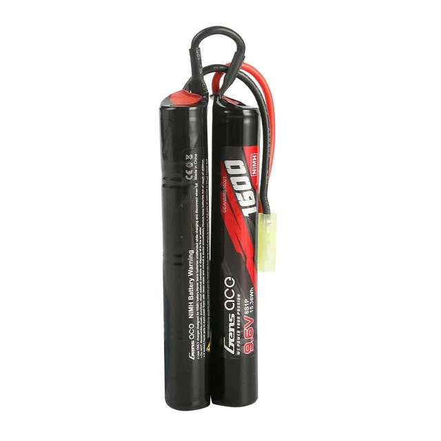 Gens Ace 9.6v 1600mAh Airsoft BB Rechargeable NiMh Battery Nunchuck Pack SPECIFICATION: - Capacity: 1600mAh - Voltage: 9.6V - Connector: Tamiya female connector - Wire Gauge: 16 AWG wire - Dimensions: each unit 117mm x 18.5mm (diameter) - Weight: 185g TIPS: 1. Require a NiMH Charger (NOT included) 2. Before purchasing make sure that the battery is suitable for your airsoft gun.