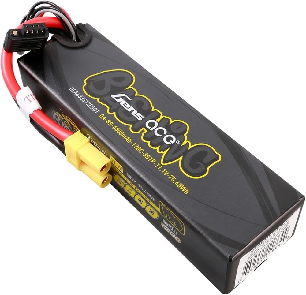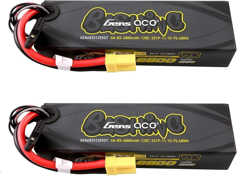 Gens Ace G-Tech Smart Battery Overview: Gens Ace batteries have been proven within the Radio Control community to deliver reliable and consistent performance for all modelers alike. All Gens Ace batteries offer superior cell matching at the factory, and are extremely consistent in selecting matched cells after each and every batch produced. Additionally, low internal resistance (IR), offers modelers stable voltage output through the whole duration of the battery. width="560" height="315" src="https://www.youtube.com/embed/_kBGtsL4Mlc" title="Gens Ace LiPo Battery Packs"> Features: Automatic identification and recording of all battery parameters Adjusting charging parameters to improve safety Balance plug with built-in chip and exclusive patented design technology Protects and extend the battery life IMPORTANT LITHIUM POLYMER SAFETY INFORMATION DO NOT leave a battery in your model when charging DO NOT leave lithium batteries unattended when charging ALWAYS balance charge lithium battery ALWAYS use a LiPo Safe charging bag/box YOU MUST use a Li-Poly specific charger to charge lithium batteries (NiMH or NiCD only chargers WILL NOT WORK!) YOU MUST not over discharge lithium battery packs READ & UNDERSTAND the instructions carefully before operating this battery NOTE: When using high energy Li-Polymer Batteries, please do not over-discharge or over-charge batteries as this will result in overheated batteries. Discharging capacity can't exceed 80% of the max capacity of the pack after full charging to ensure a good cycle performance. It is recommended to fully charge a brand new battery before using and only discharge the battery 50% for the first 5 cycles. Always monitor race time and/or set a low voltage warning on ESC (End voltage cannot be lower than 3.2v per cell). Do not use a battery that has too low a voltage. Do not expose batteries to sunshine or store/charge batteries at temperatures above 35°C or in a closed car. The high-temperature environment could cause damage to the pack or make it burst. If the battery becomes hot while fast charging, high current discharging, or racing, do not charge it until it has cooled completely. Wait about 20 mins, then inspect prior to recharging. Includes: (1) G-Tech Smart 3S Bashing Series Hardcase LiPo Battery 120C (11.1V/6800mAh) w/EC5 Connector Specifications Nominal Voltage: 11.1V (3S) Capacity: 6800mAh Maximum Charge Rate: 5C (34A) Discharge Rates Continuous: 120C Peak: Cell Configuration: 3S1P Watt Hours: 75.48Wh ROAR Approved: No Connectors Battery: EC5 Balance: G-Tech Smart Connector Dimensions (LxWxH): 6.28x1.87x1.27in (159.4x47.61x32.17mm) Weight: 18.38oz (521g)