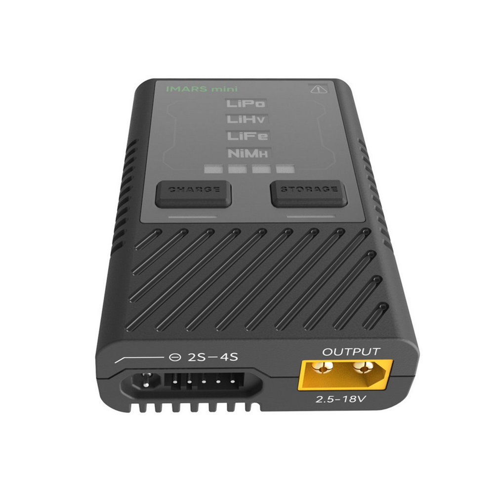 Gens Ace IMARS Mini G-Tech 60W RC Battery Charger - Eco Friendly Version Product Description The Gens Ace IMARS Mini G-Tech 60W RC Battery Charger is a versatile charger that is compatible with both Gens Ace G-Tech smart batteries and non-smart batteries. It is the first charger in the Gens Ace G-Tech Smart Eco family and is designed to be eco-friendly. When a Gens Ace G-Tech battery is connected to the IMARS Mini charger, the charger will automatically detect the battery type, voltage, and recommended charging current through the smart balance connector. Charging will begin automatically within 5 seconds of connecting the G-Tech smart battery. For non-smart batteries, users must manually select the battery type and the required working mode to begin charging. The charger can adjust the charging current intelligently based on the charging voltage flow of the battery. Product Features: Charges 2-4S LiPo, LiHV, LiFe, and 2-12S NiMH batteries Intelligently recognizes G-Tech smart battery information through an IC chip for safe and easy charging Automatic storage function, making it the smallest charger with auto storage New interface design and increased balance connector durability Small and lightweight, portable design Product Specifications: Max. Charge Power: 60W Charge Current: 1-5A, Max. 5A (Auto Adjustment) Max. Storage Power: 3W discharge, 60W charge Input Voltage: 5-20V Max. Input Current: DC 3A Balance Current: 0.4A/Cell X 2 Input Port: QC/PD/BC1.2/USB-C V1.4/SDP/CDP/DCP/Apple 5V/2.4A (Does not support 5V/1A adapter input) Abnormal Battery Voltage Alarm: Yes Supported Battery Types: LiPo/LiHv/LiFe (2~4S), NiMH (2-12S) Working Temperature: 0℃~40℃ Storage Temperature: -20℃~60℃ Dimension: 85 55 21mm Net Weight: Approx. 64g What's in the Box? IMARS Mini 60W Smart Charger x 1 XT60 female to EC3 male adapter x 1 XT60 female to EC5 male adapter x 1 Product Manual x 1 Please note that this is the eco-friendly version, which does not include the USB-C power supply adapter. If you need the version with the USB-C power supply adapter, click here. You can purchase the USB-C power supply adapter only by clicking here. Our Advantage: Your orders will be dispatched via FedEx or UPS from the USA directly. Fast shipping and excellent local after-sale service guaranteed in the USA. Service-priority in the online shop, like the long warranty period and the lower price. Energy Density: Specially adapted to each UAV type and RC car/boat/heli type. Very high according to capacity/weight. In fact, we are specialists in High Power Lipo Batteries. It is our unique technology; the highest power of our battery is 120C. Another technology is our batteries are able to be stably discharged simultaneously. Low IR: Provides stable voltage until the end of your mission. Safety: Gens Ace and its partners fulfill the ISO9001 and ISO14001 standards.