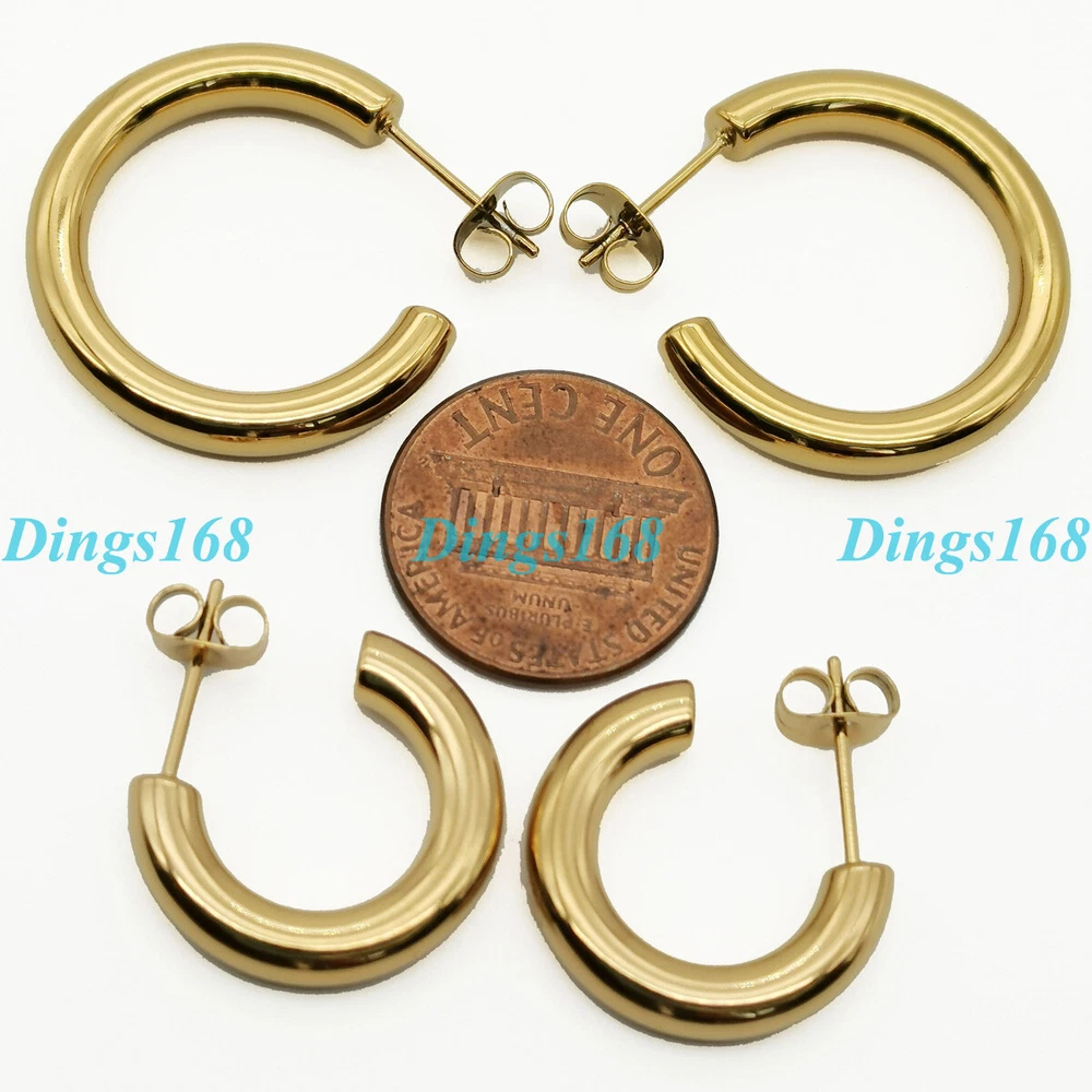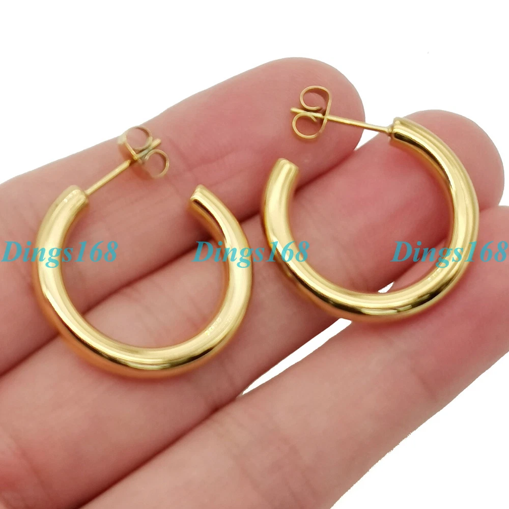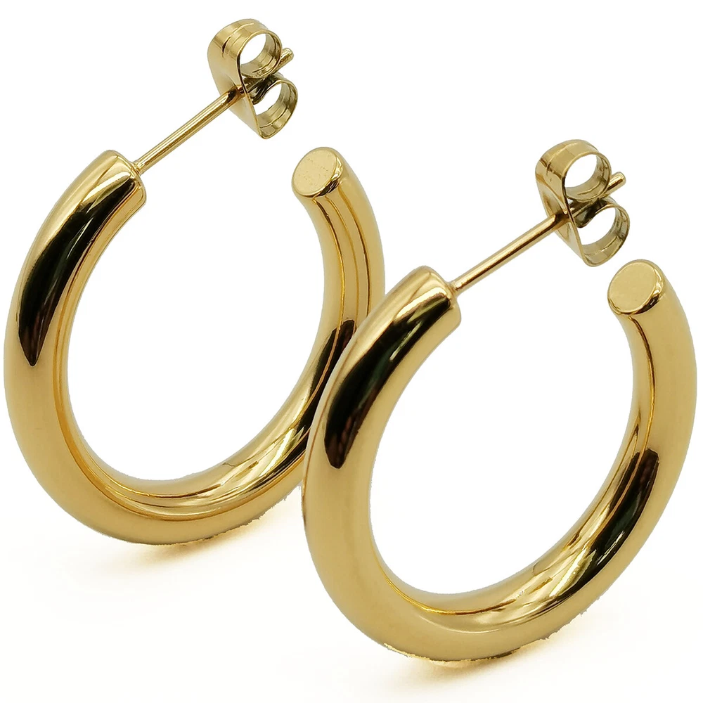 Genuine 18K Gold Filled Tarnish-Free 1" Medium Size C-Hoop Post Back Earring B5A