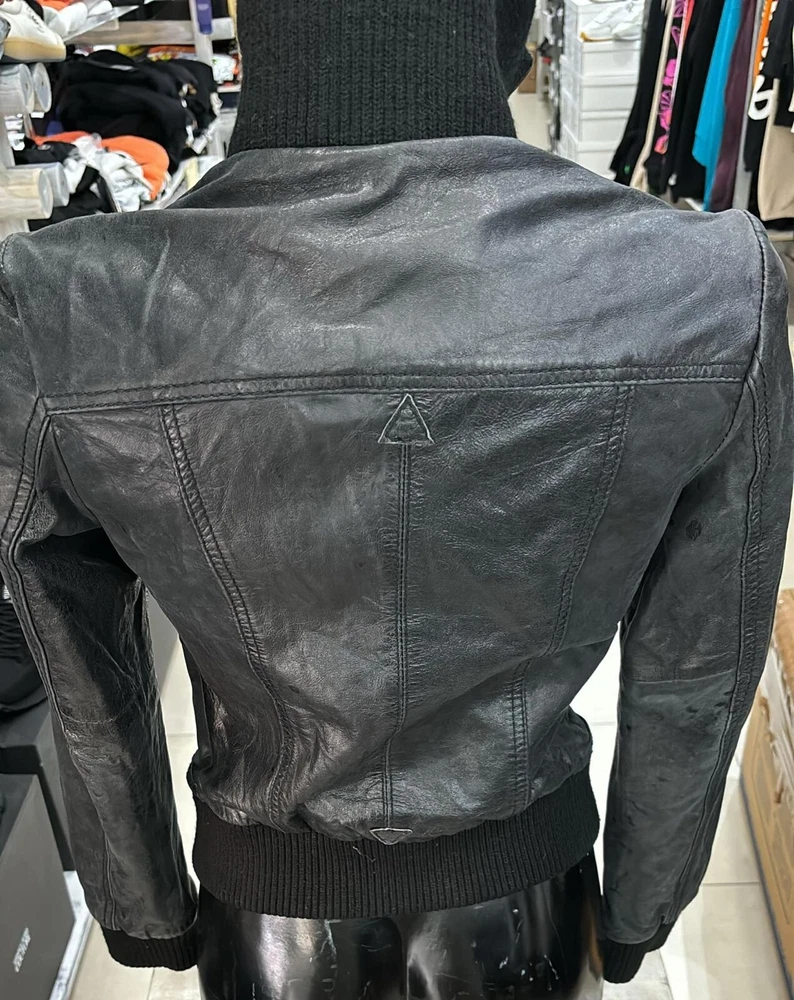 UPC:Does not applygtin13:Does not applyOuter Shell Material:LeatherSize Type:RegularVintage:YesStyle:JacketType:JacketBrand:Real LeatherClosure:ZipperDepartment:womanSize:40Color:Black