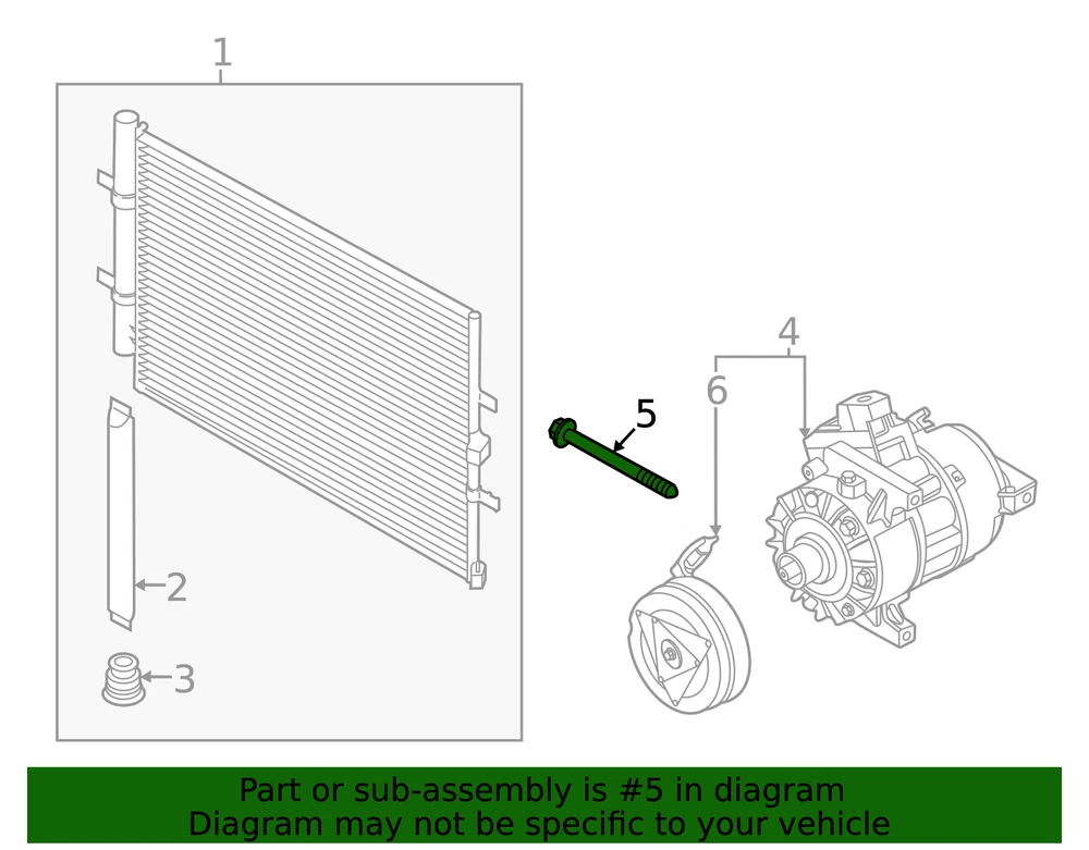 Hiller Parts Department Genuine Compressor Assembly Mount Bolt W719356-S437 Part can be found as # 5 in the diagram above Product Description 3.5 non turbo, condenser & compressor. Condenser & compressor, 2020-23. 3.5L condenser & compressor. SOLD IN QUANTITY; 1 Specifications Brand Ford Manufacturer Part Number W719356-S437 SKU W719356-S437 Product Genuine Compressor Assembly Mount Bolt W719356-S437 ONLY PART REFERENCE #5 ON THE DIAGRAM IS INCLUDED Terms and Conditions Thank you for shopping with us. Please find our policies below. If you have any other questions, please don't hesitate to contact us. Shipping Terms In stock orders ship within 24 hours. Weekend orders will be processed the next business day. If a part is not in stock and must be ordered from the manufacturer, it usually takes 2-3 days to arrive to us and will be promptly shipped to you. Most of the orders are shipped complete within 2-3 business days. A few of the parts ordered from the manufacturer may take up to 5-6 business days to arrive and will shipped to you immediately. Depending upon location, ground shipments usually take 2-7 days. Your order may be shipped Overnight for an additional cost. Oversized shipments will be additional; you will be contacted prior to shipping for approval. We cannot guarantee transit times for ground and oversize orders. Shipping Carrier substitutions may be made at our determination in an attempt to reduce shipping cost to the customer. In the unlikely event that a part has been placed on backorder or discontinued, we will do our best to try and find one for you as quickly as possible We do not ship COD orders. Return Policy Contact us to arrange for any returns. A copy of the invoice will need to be included with the return. Parts must be resaleable and in the original packaging. 20% restocking fee may be charged, if the return item is used or not sellable. We cannot take back used parts. We cannot take back installed or tried parts. Electrical parts are not returnable. We do reserve the right to refuse and return any parts we find have been installed, are used or do not meet the above criteria. Return request need to be within 30 days of receipt. Cancellation Policy An order or a portion of an order may be cancelled up until the time it is shipped and no longer in our possession. Home • Newsletter Signup • Contact Us Copyright © 2026 Hiller Parts Department , All rights reserved. Solution by RevolutionParts, Inc. :: Design by OCDesignsOnline